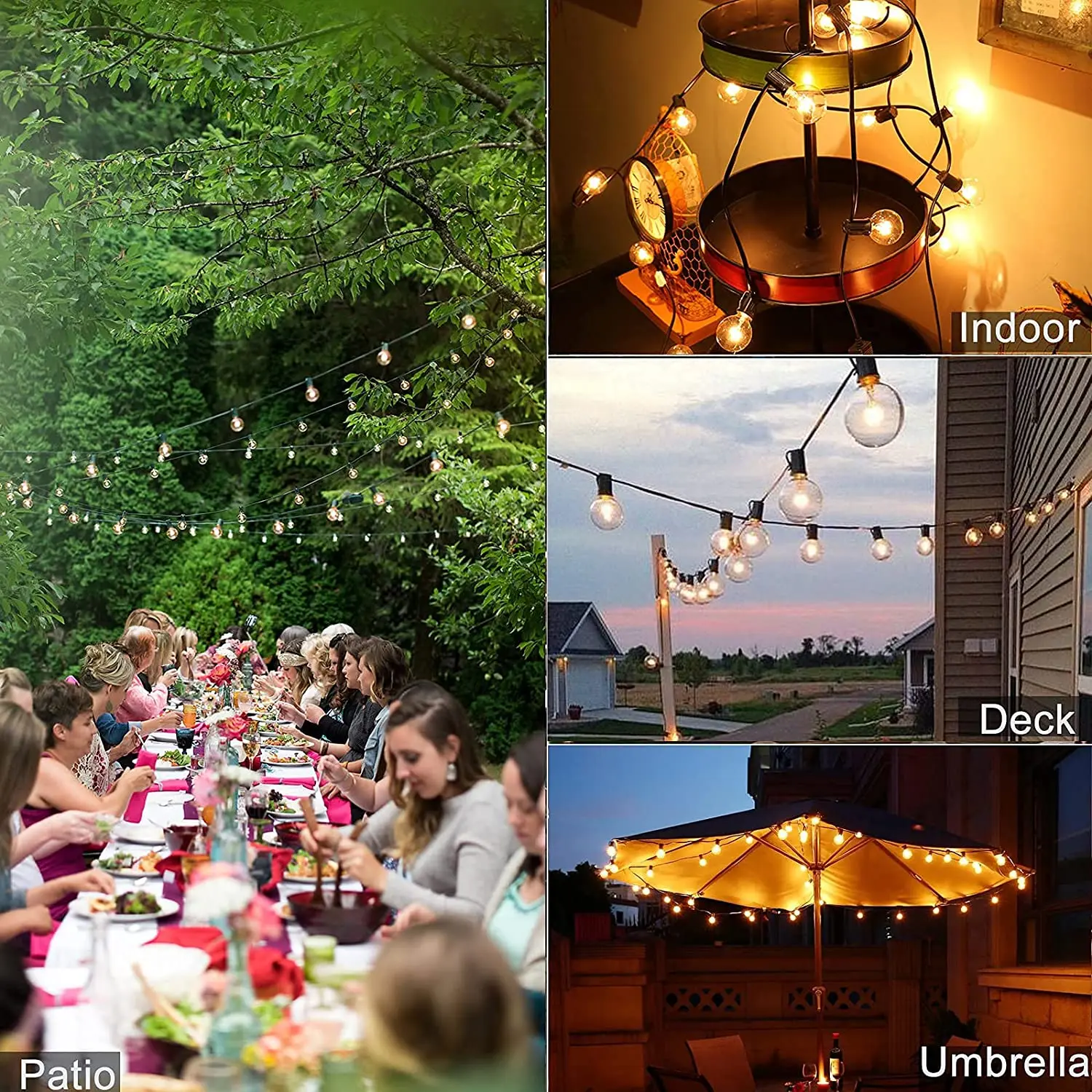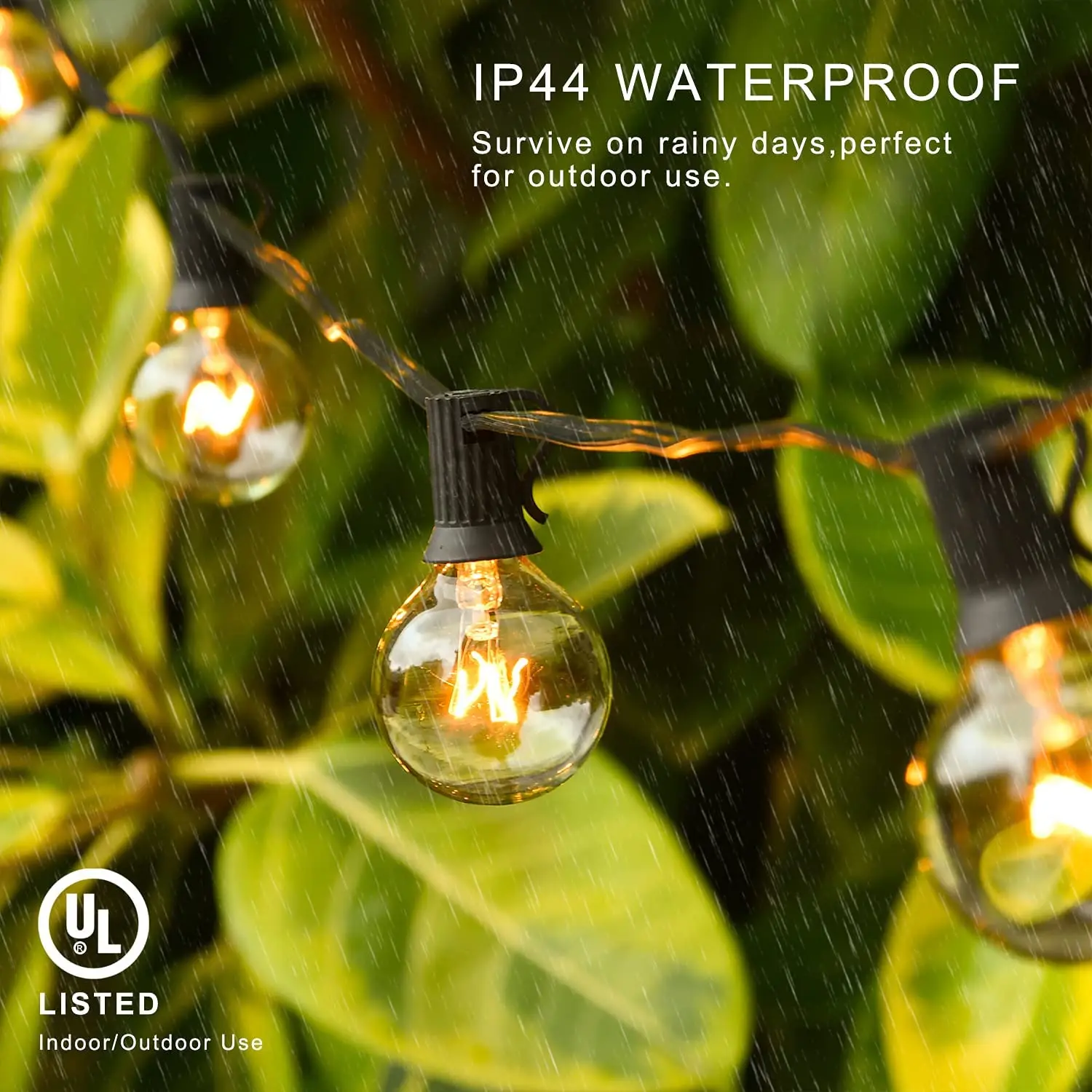 Гирлянда G40 с круглыми лампочками, Праздничный Рождественский шнурок с теплым белым светом, водонепроницаемые уличные лампочки для патио, сада, заднего двора, Декор