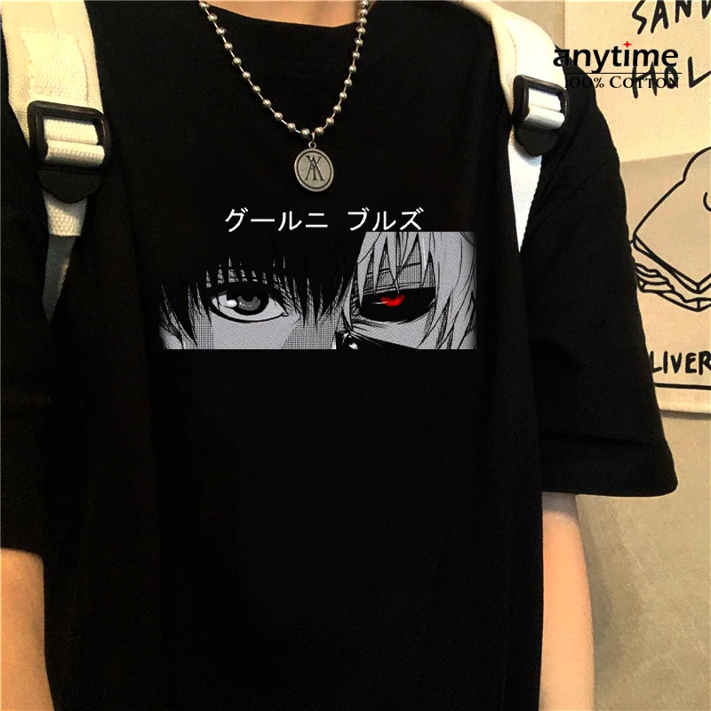 Хлопковая футболка премиум-класса для мужчин и женщин, свободная футболка с принтом в стиле японского аниме, панк, Токийский Гуль, канеки, Кен, повседневная мультяшная футболка в стиле Харадзюку