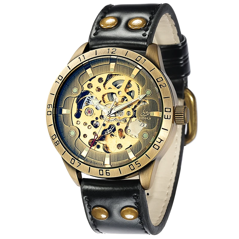 Часы-скелетоны Мужские механические, под бронзу, под старину