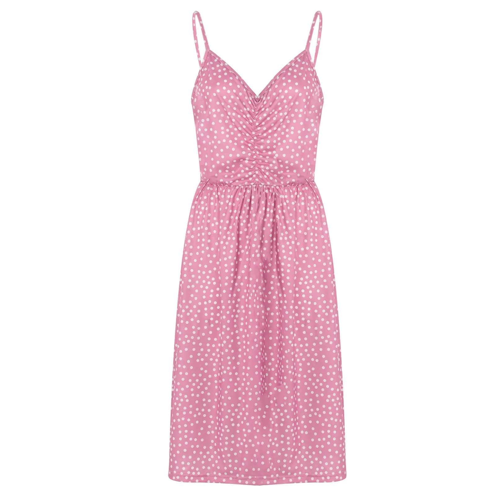 Женское платье в горошек, с V-образным вырезом, на тонких бретельках