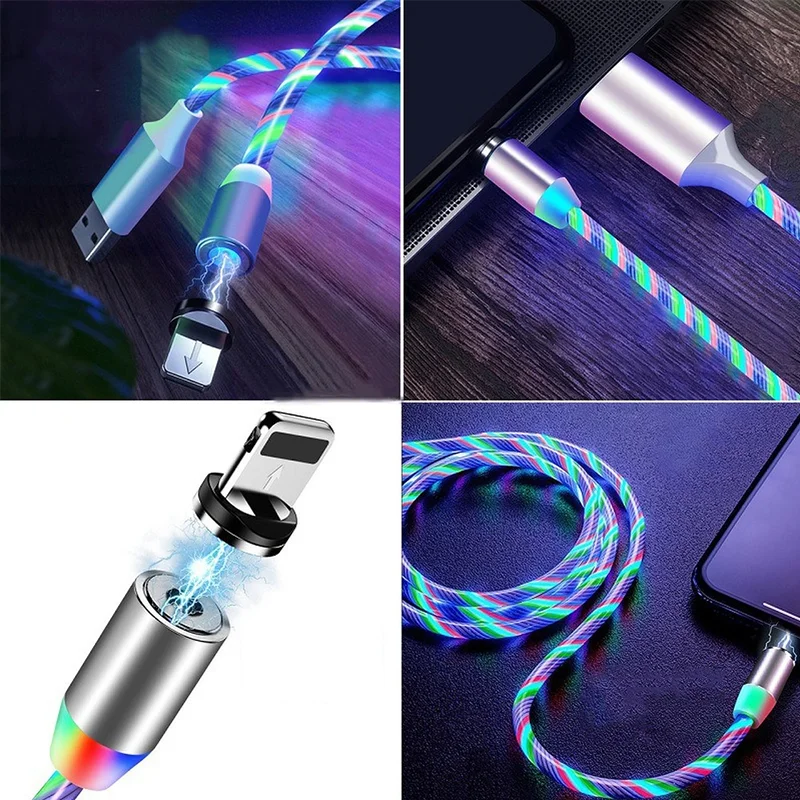 3 In1 Магнитный ток Светящееся освещение Зарядный кабель для мобиль...