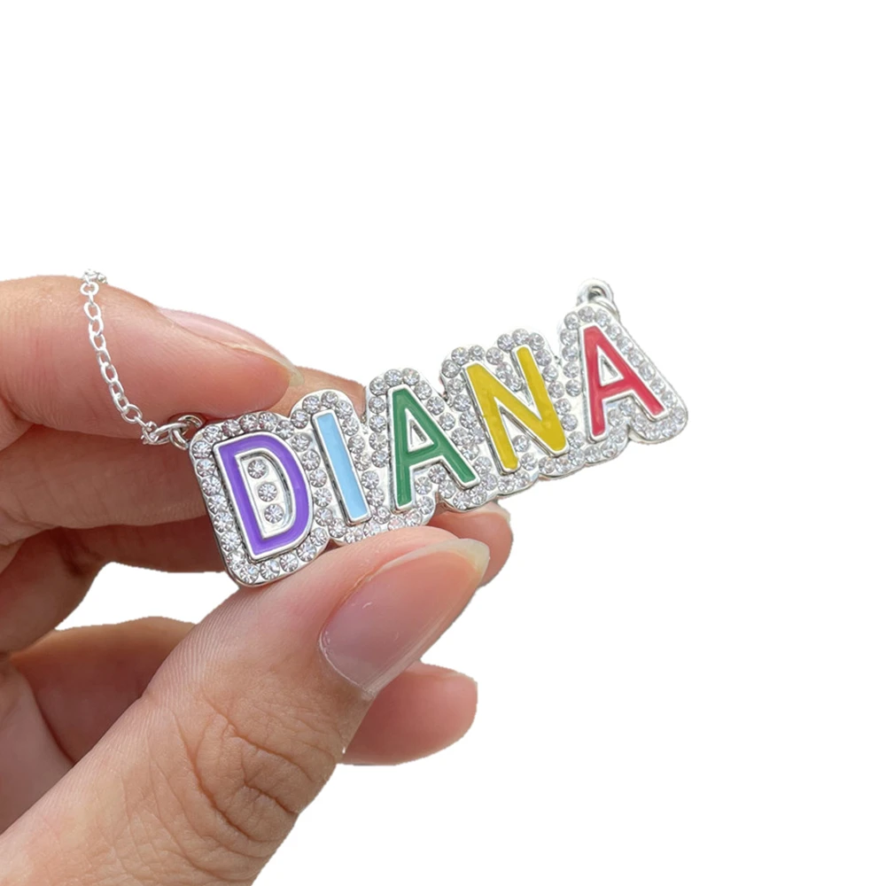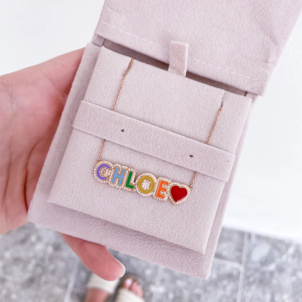 Эмалированное ожерелье 3umeter с именем, персонализированное ожерелье на заказ, эмалированное ожерелье, яркая эмаль, кулон-табличка с именем ювелирные изделия на Рождество