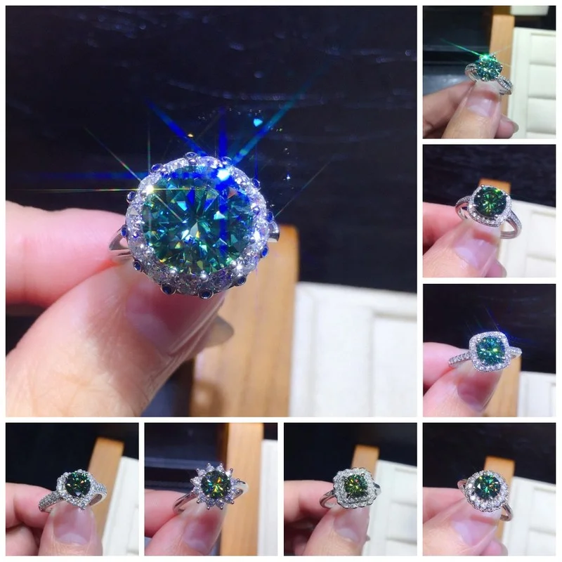 Ручной работы 2ct зеленый Муассанит кольцо 925 серебро обручальное ...