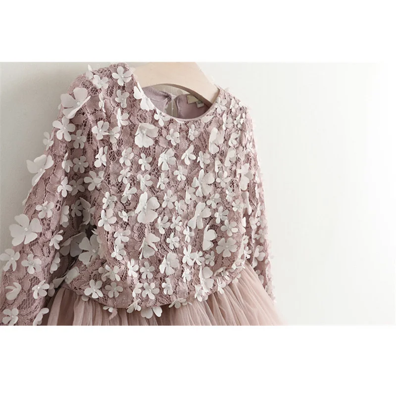 Детское шифоновое платье с длинным рукавом, с 3d цветами