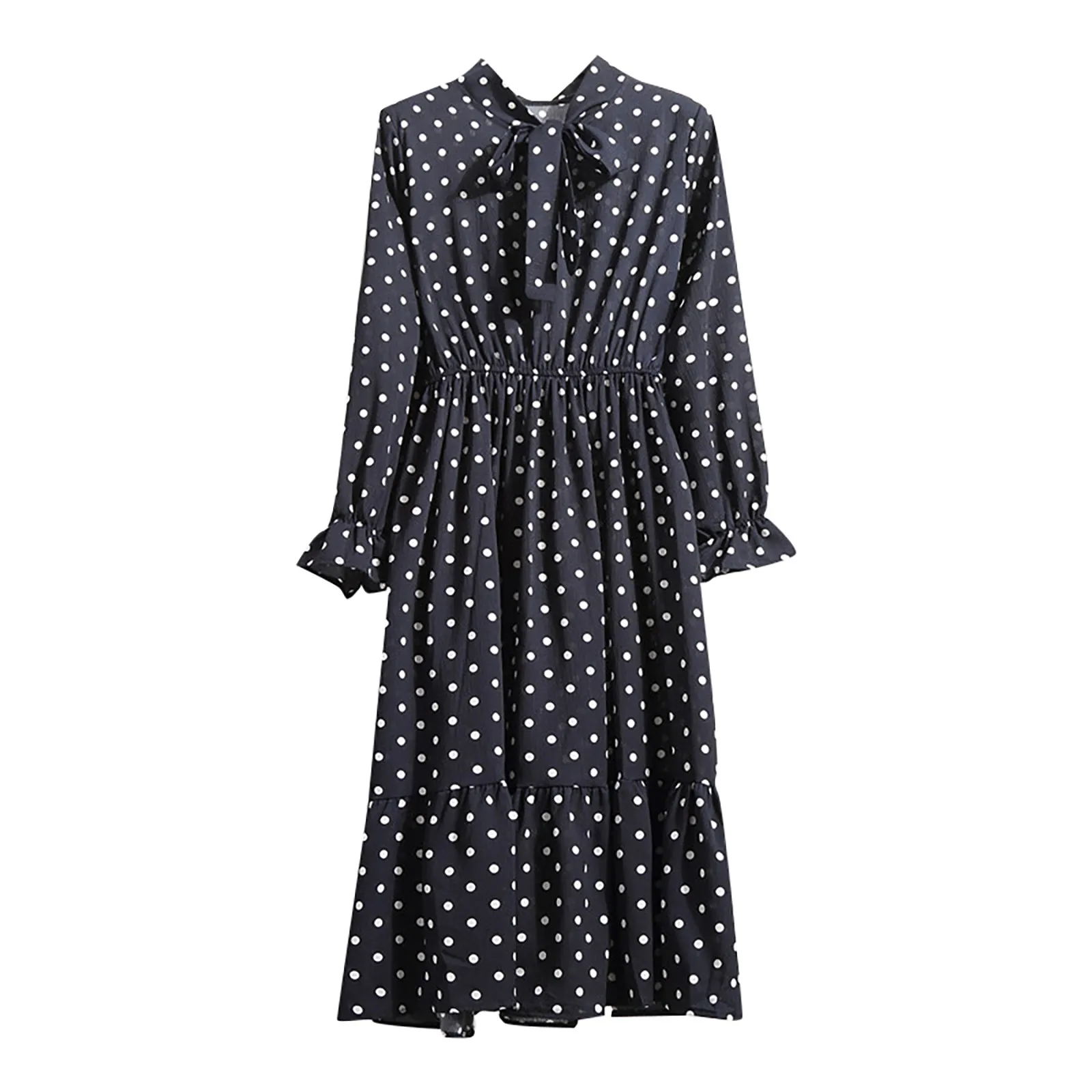 Женское платье-миди с бантом, с длинным рукавом, эластичной талией ...
