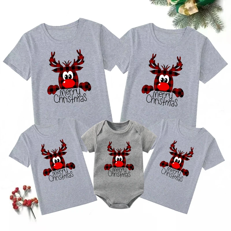 Рождественская клетчатая одинаковая семейная одежда с принтом оленя...