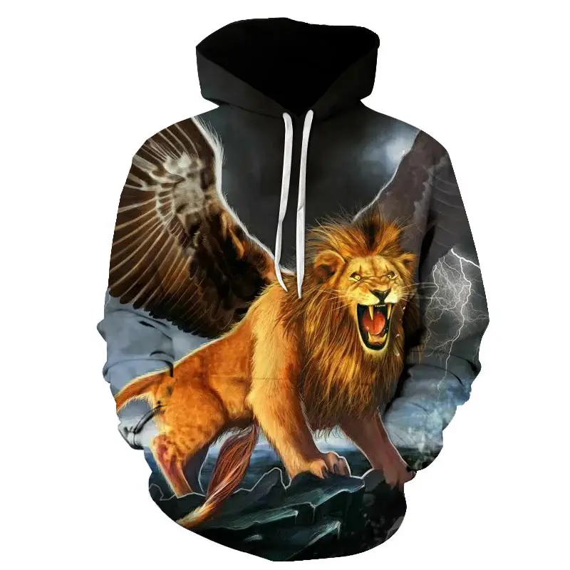 Новинка 2020, одежда с изображением Льва и тигра, толстовка с 3d Ци...