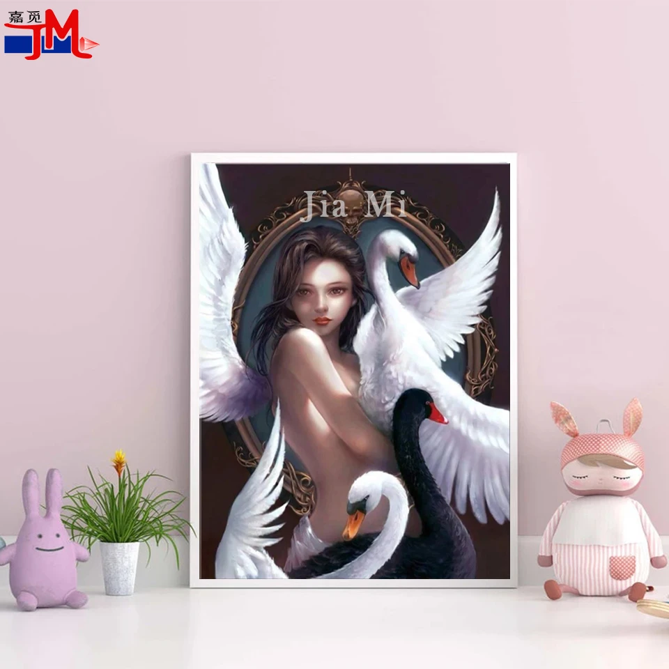 5D хрустальная вышивка, алмазная живопись, мозаика, черный, белый лебедь и сексуальная девушка, 3D квадратная алмазная вышивка сделай сам, животное, картина, декор
