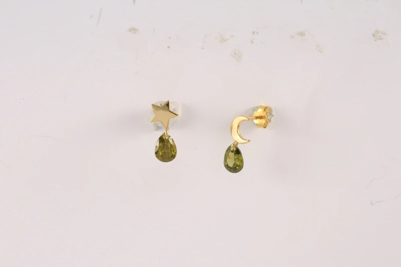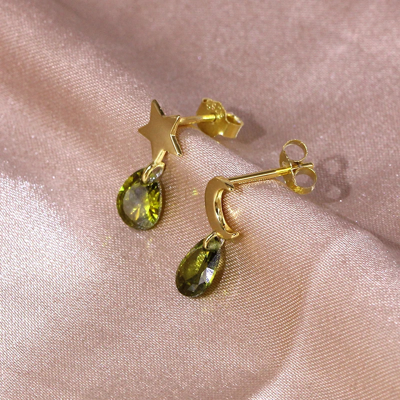 Женские серьги-капельки из серебра 925 пробы с зеленым Цирконом