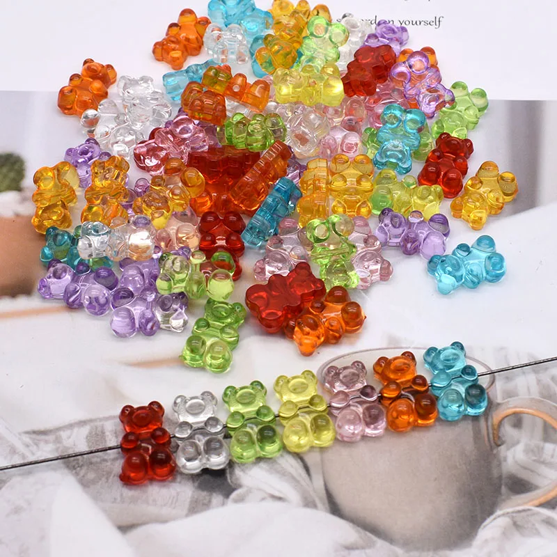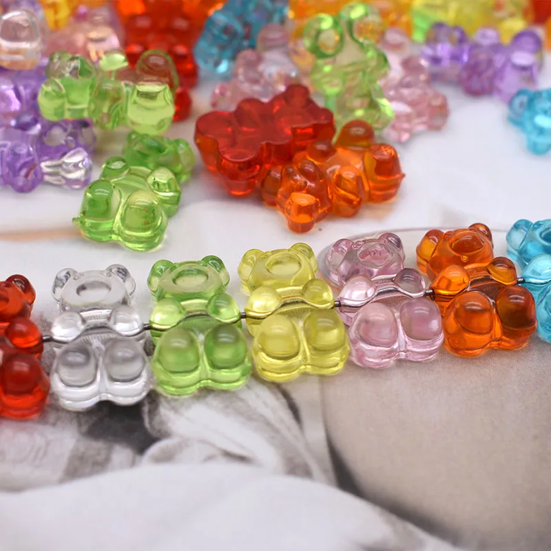Радужный Красочный Милый медвежонок акриловый бисер для изготовления ювелирных изделий ожерелье браслет серьги медведи Рождественский подарок крестовое отверстие