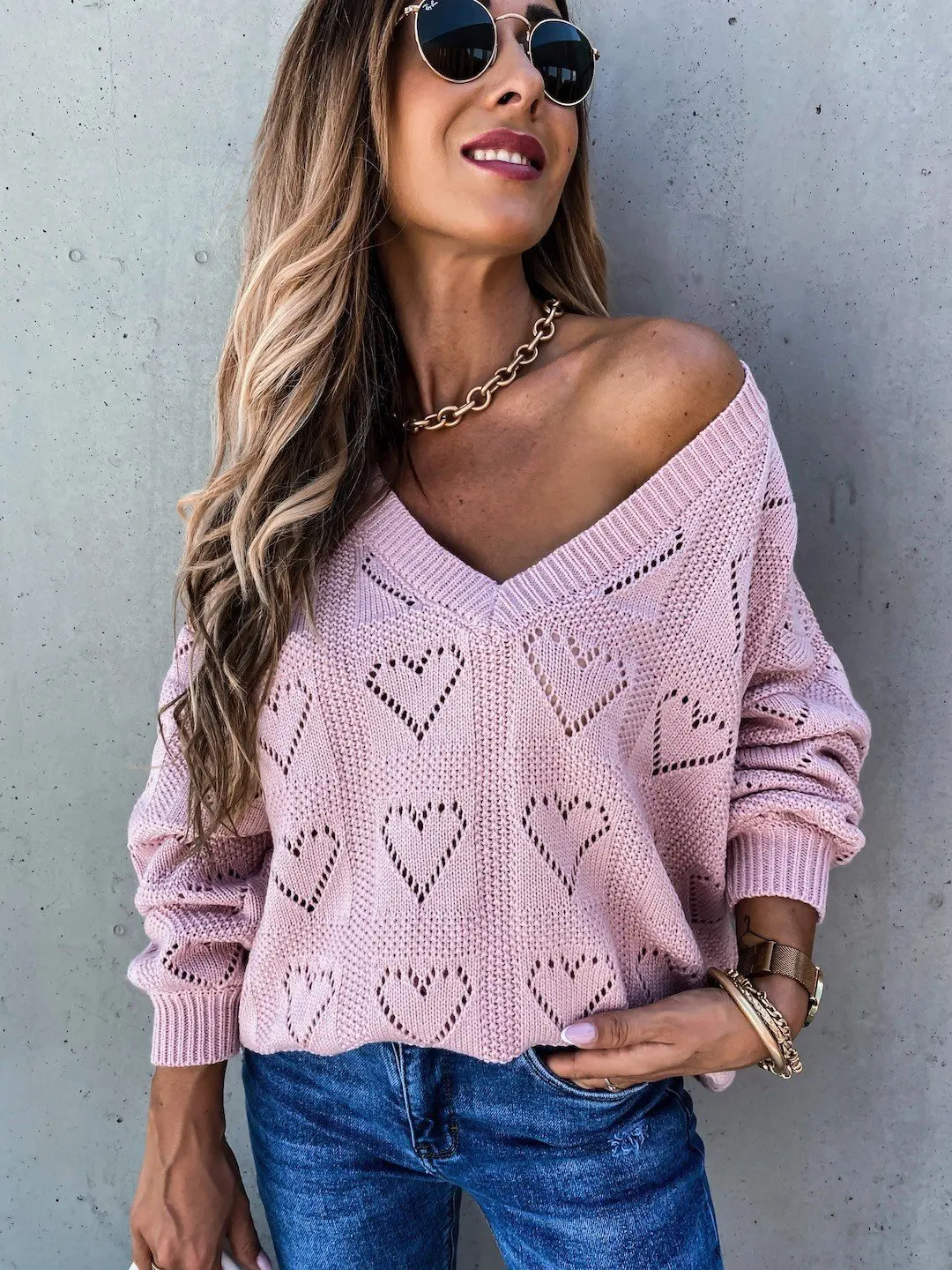 Женский вязаный свитер в стиле бохо, Свободный пуловер с вырезами в форме сердца, джемпер, зима 2021