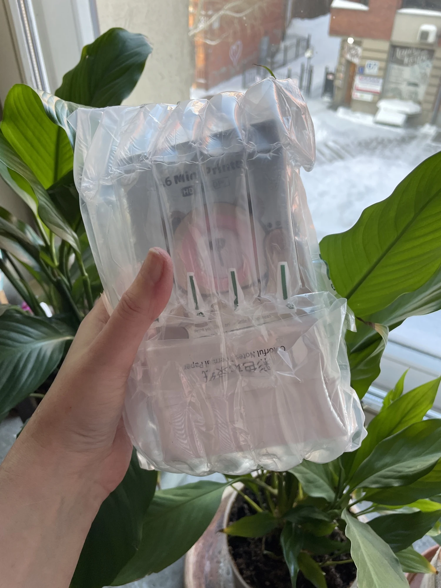 Отличный принтер. Заводская упаковка, в пленке коробка. В воздушной пупырке защита. В принтере рулон бумаги, в коробке кабель зля зарядки. Приложение с гуглплея
