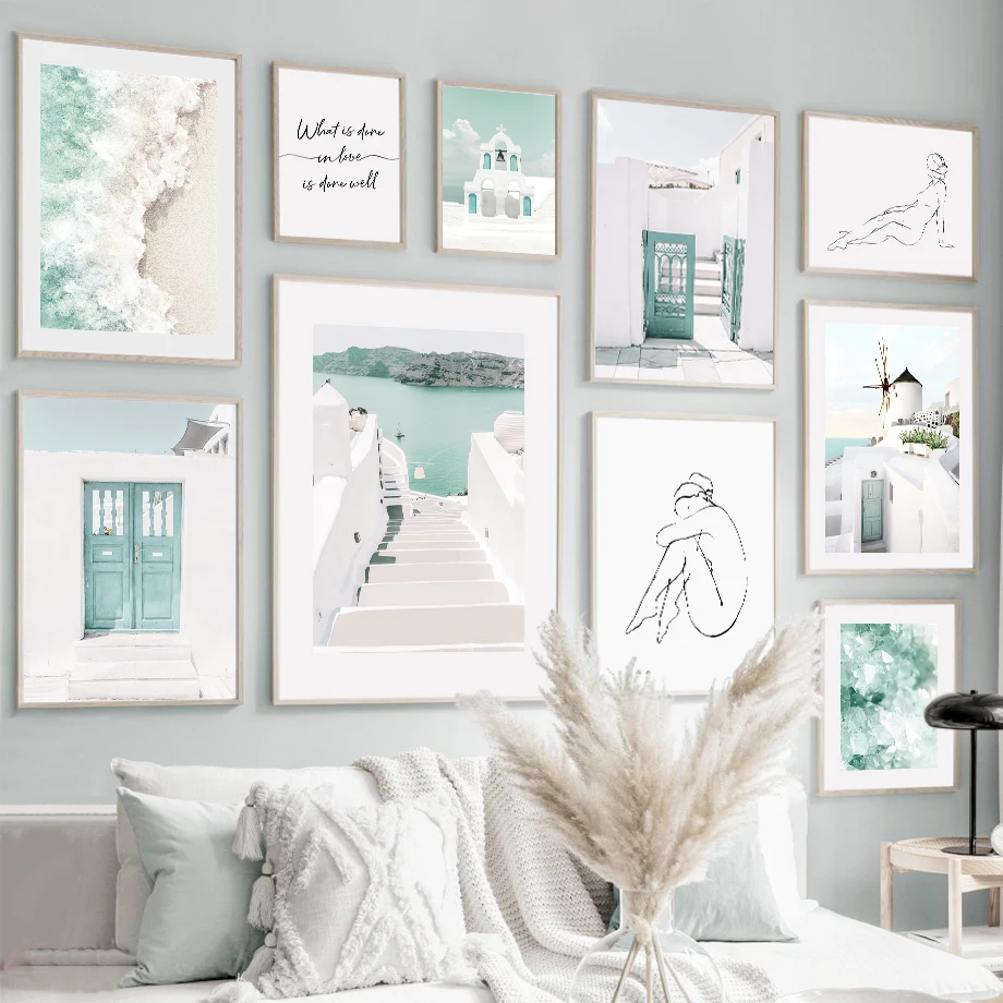 Настенная Картина на холсте с изображением абстрактной девушки для церкви и прибрежного города, скандинавские постеры и принты для гостиной