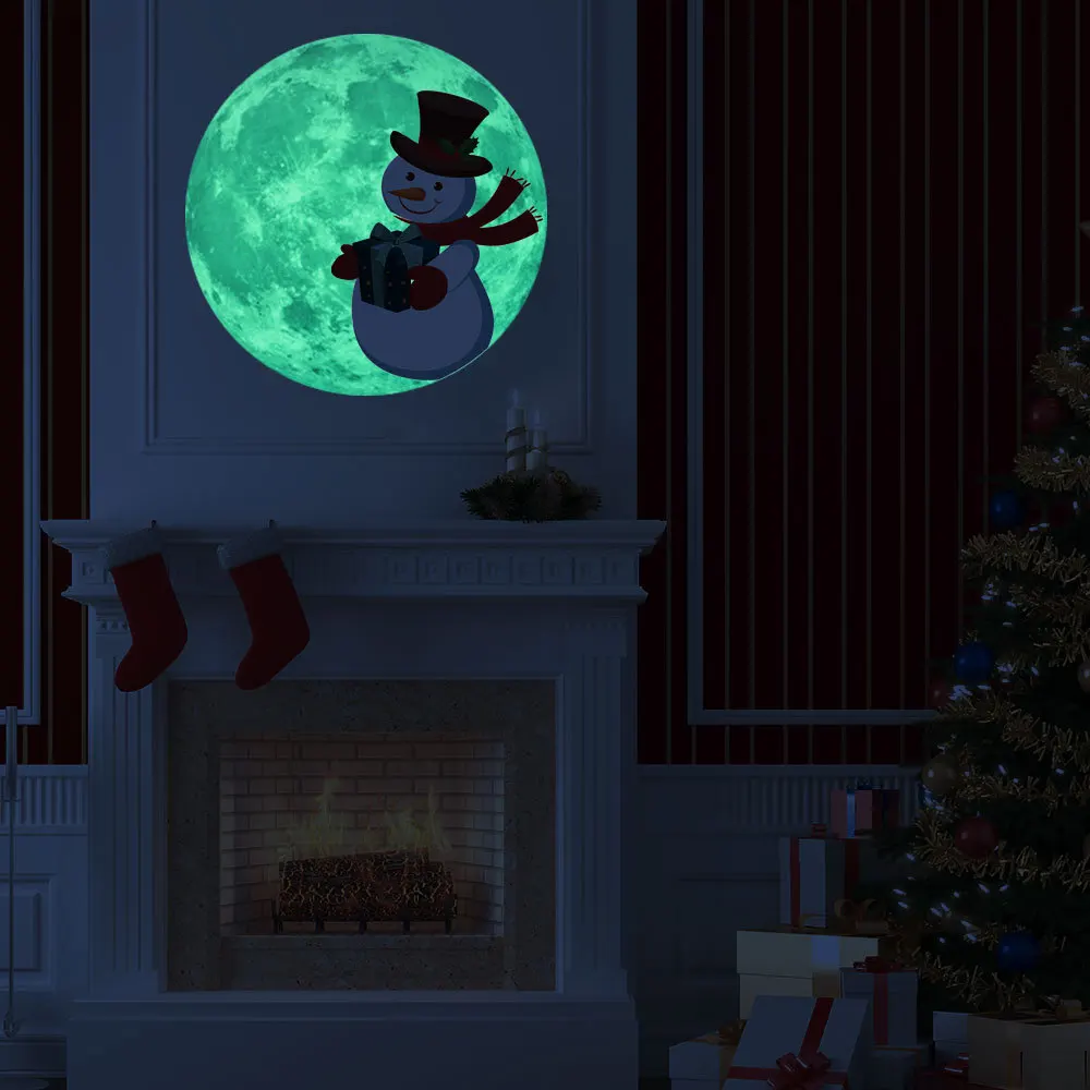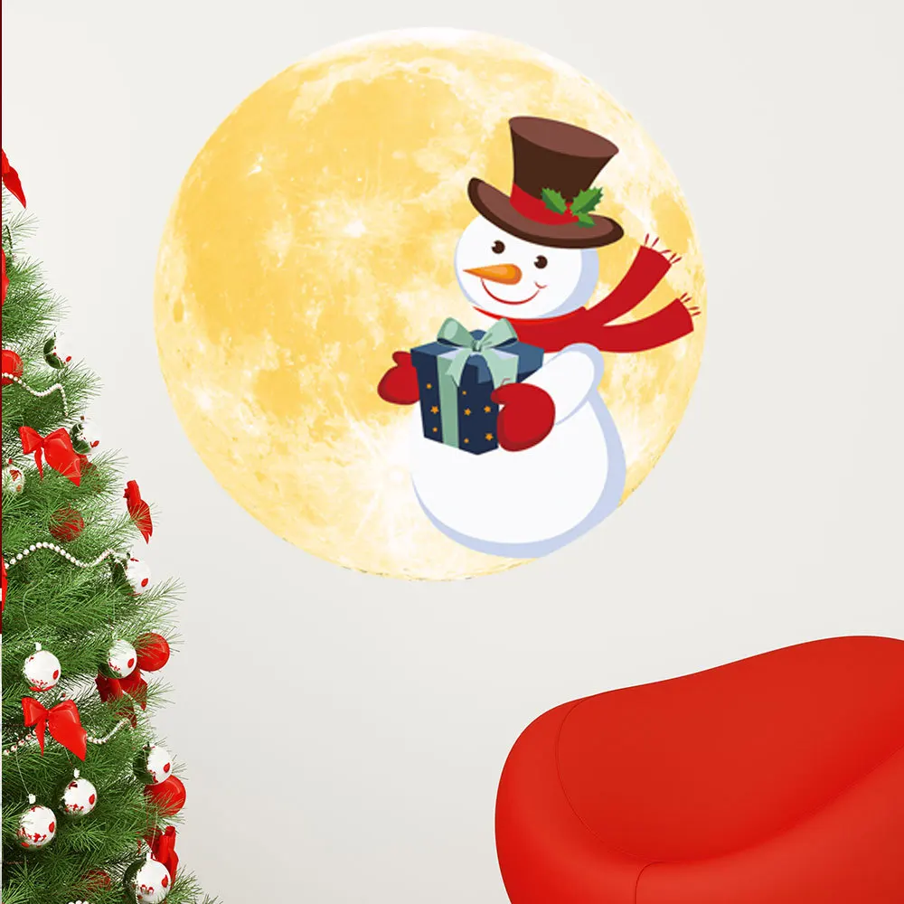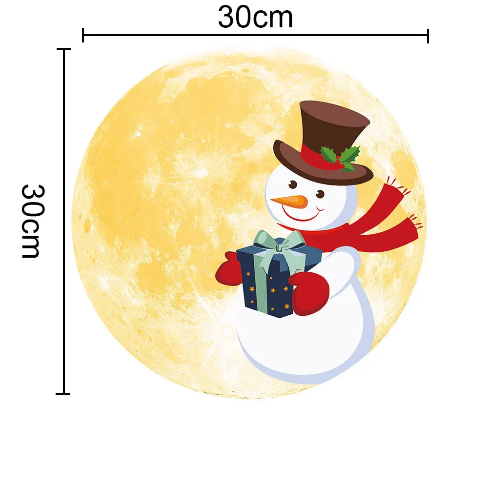 30 см Световой Луна наклейки на стену с рождественским снеговиком с...