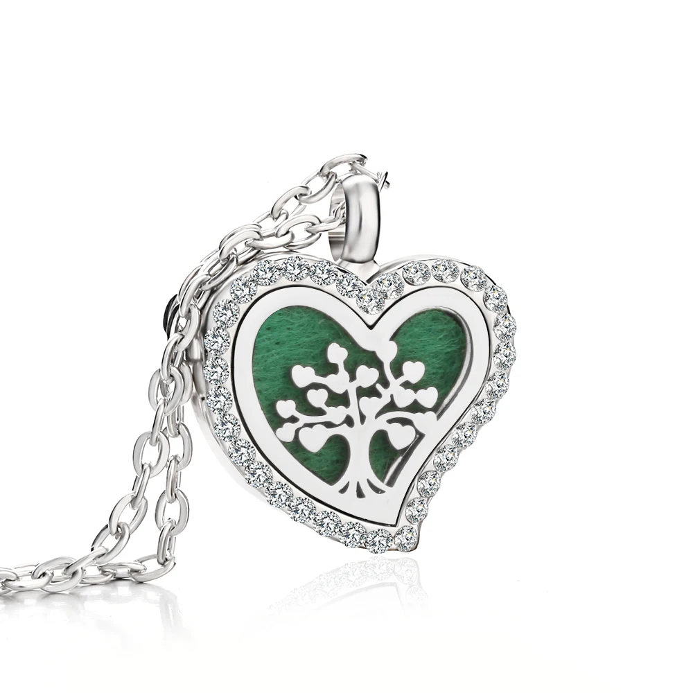 Новинка, ожерелье для ароматерапии, подвеска-диффузор, хрустальное сердце, магнитное, винтажное, Цветочное дерево, арома, парфюм, ожерелье, медальон, ювелирное изделие