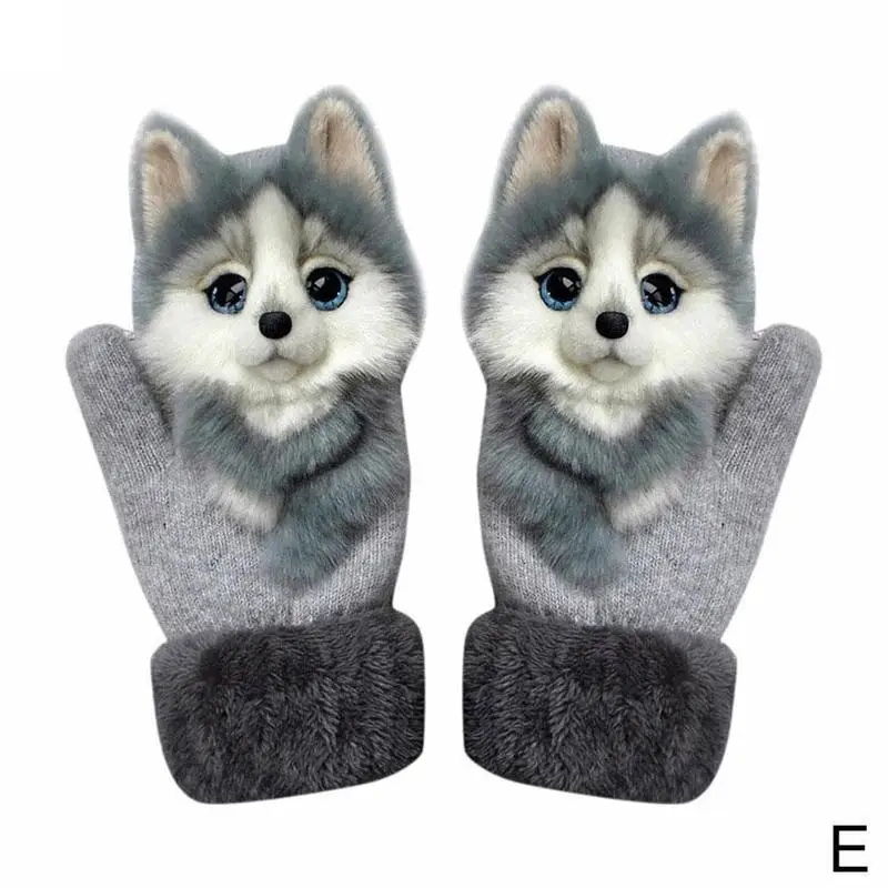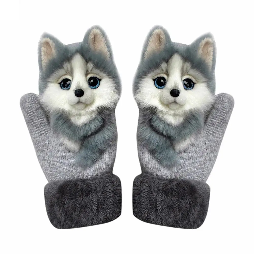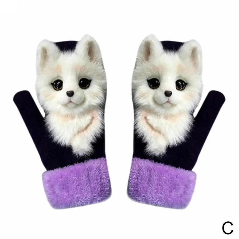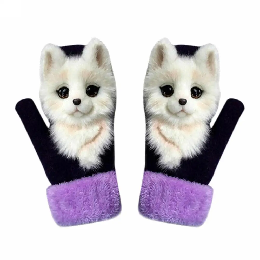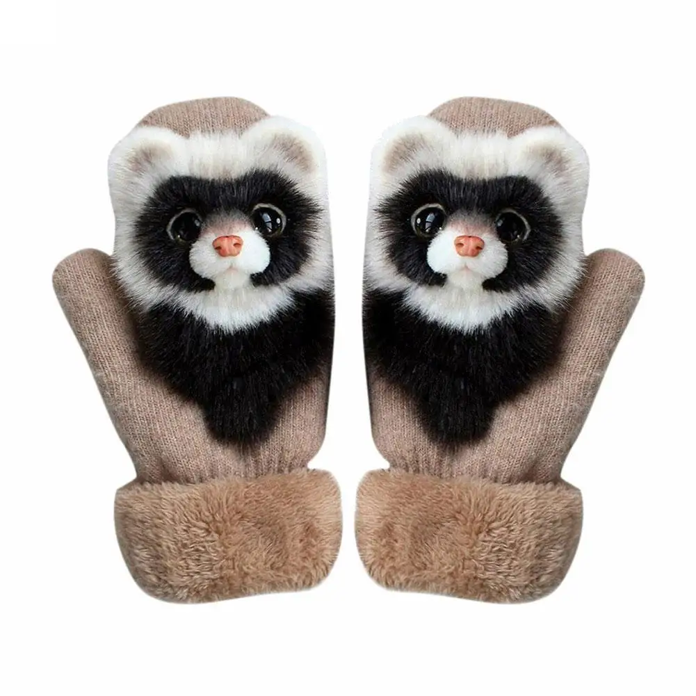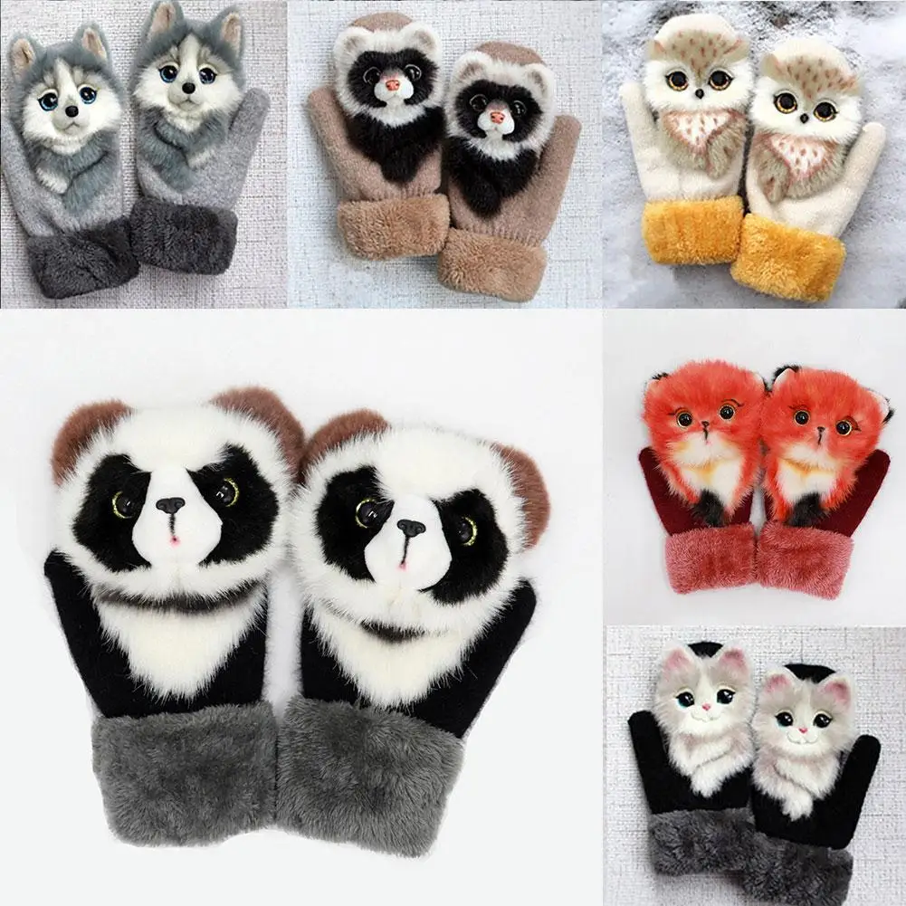 Зимние теплые перчатки Xfh с рисунком животных, кошек, собак, панд, енота, длиной 22 см, искусственные пальцы, модные мягкие перчатки принцессы