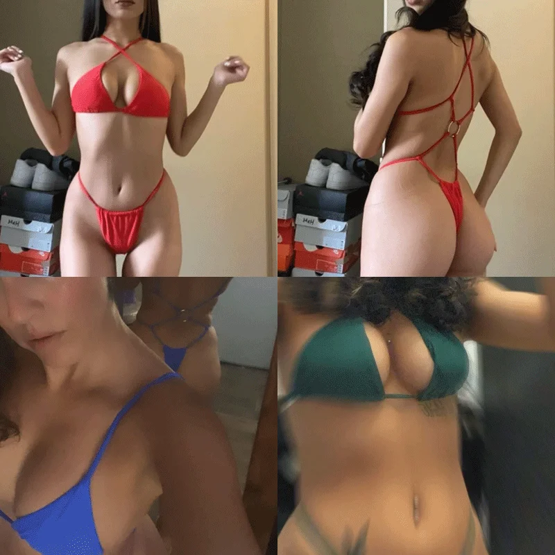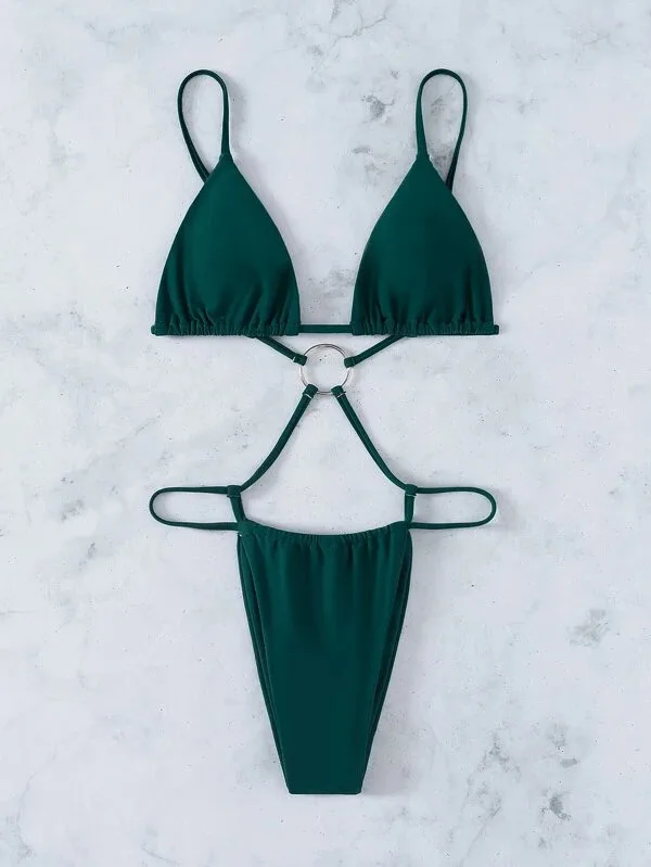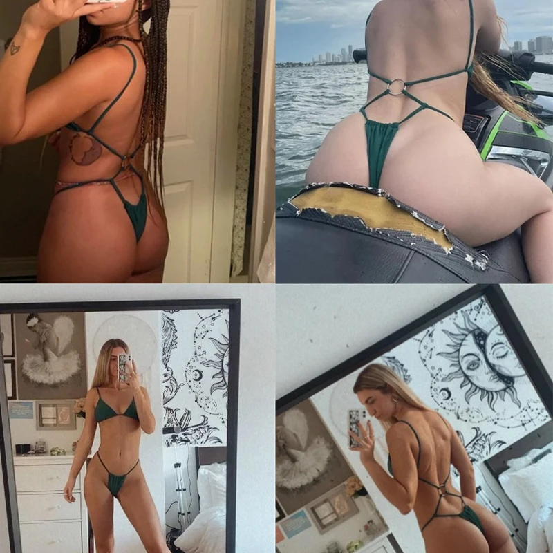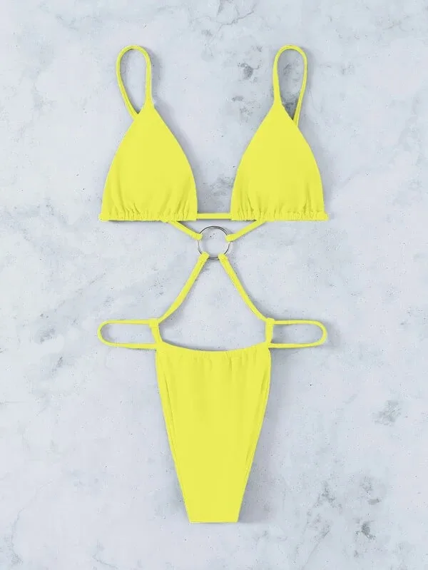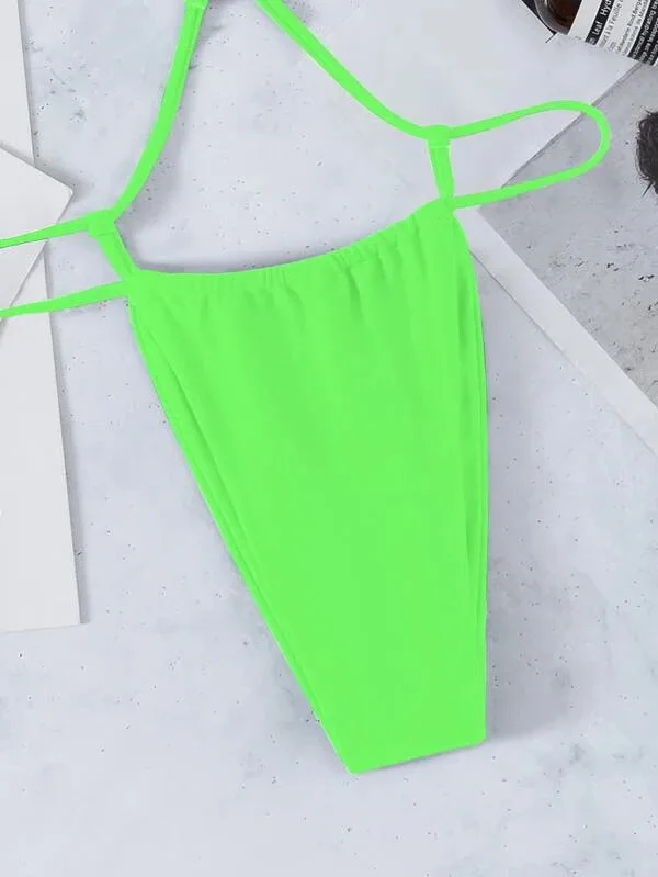 Комплект экстремального микро-бикини JyoJyo 2022, купальник с металлическими лентами, женские стринги, бикини, треугольный купальник, сексуальный неоново-зеленый купальный костюм, Новинка