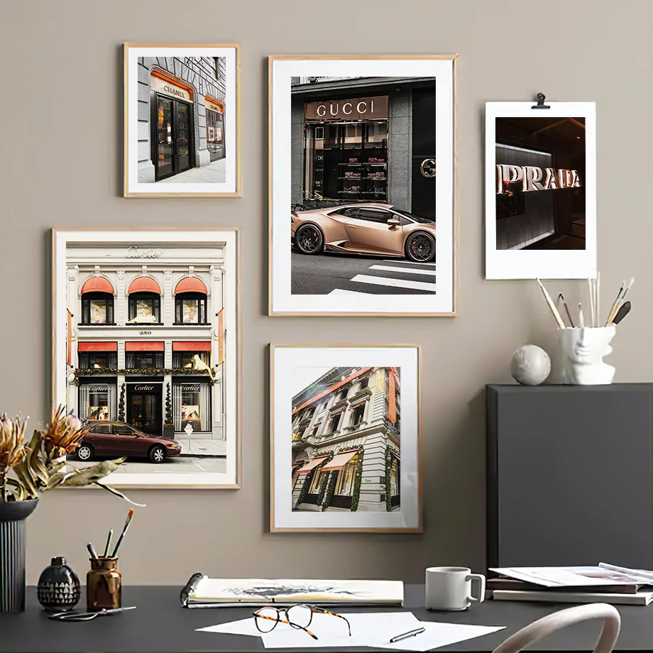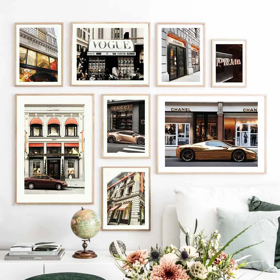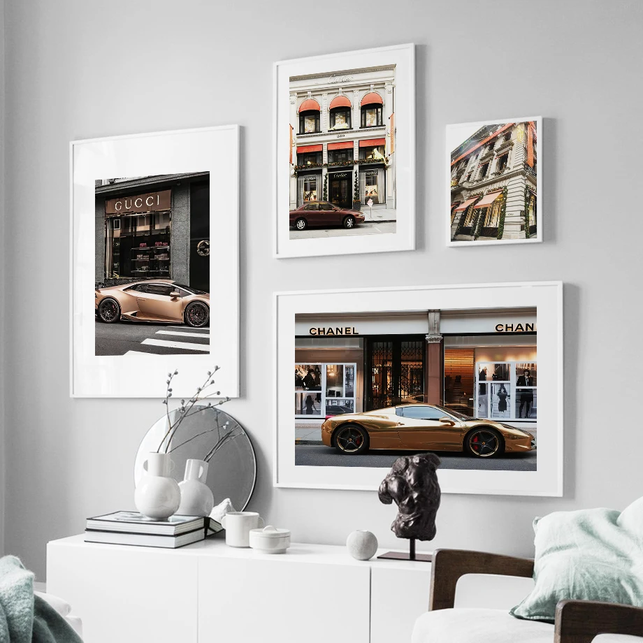 Модный магазин в Париже, роскошные классические настенные картины с изображением спортивного автомобиля, скандинавские постеры и принты для гостиной
