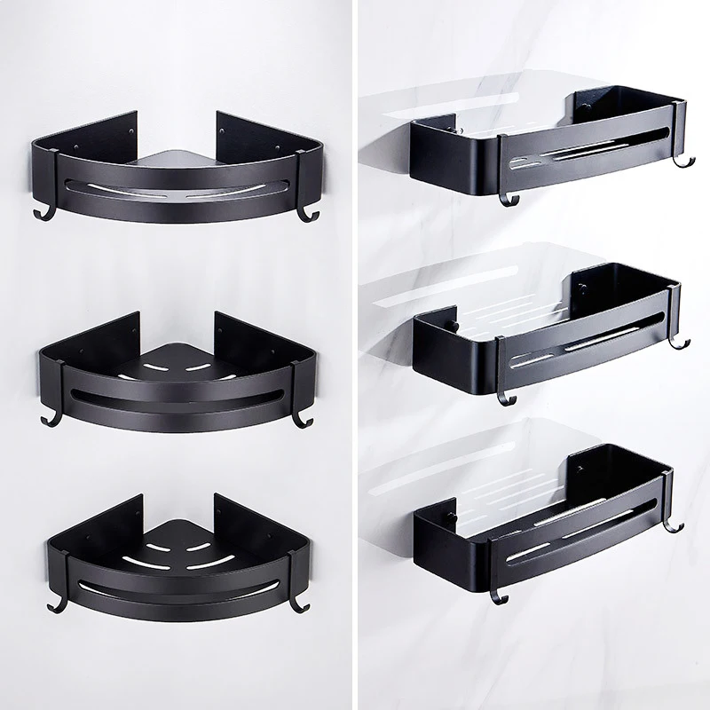 Полка черная для ванной комнаты, стеллаж для хранения, угловая полк...