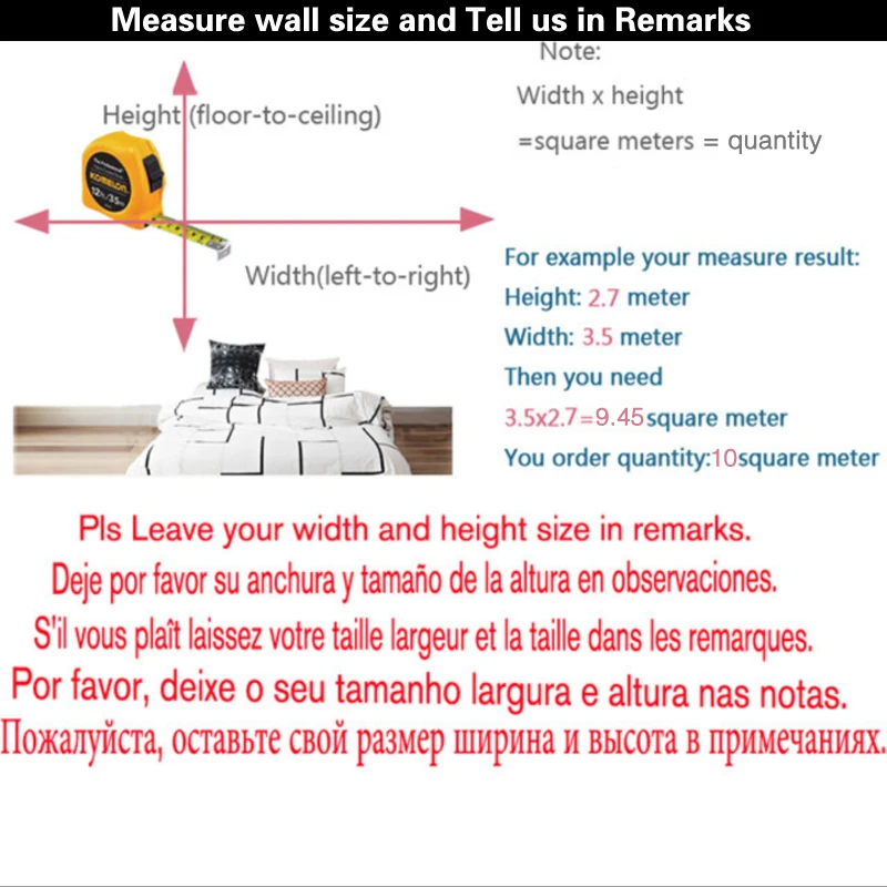 (3) мы можем сделать любой размер,Фотообои изготавливаются в соответствии с размером, Пожалуйста, разместите заказ, обратитесь к следующему методу расчета: 1 Количество = 1 квадратный метр, количество заказа = ширина(М)* Высота(М) (Например: вашРазмер стены: 3,5 m Высота * 2,7 м ширина = 9,45 квадратных метров, таким образом, вы должны приобрести 10Количества).