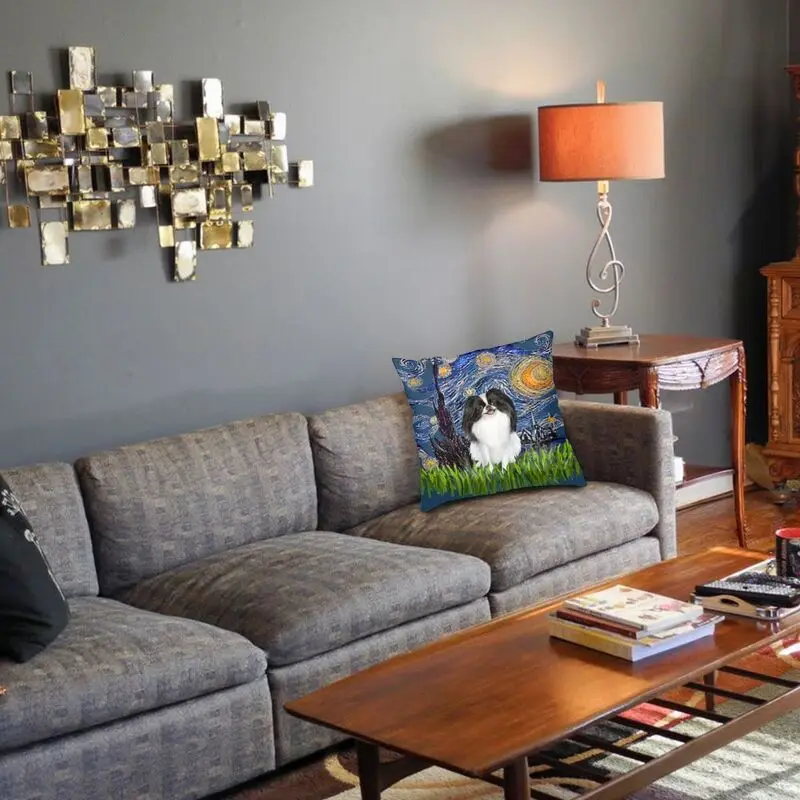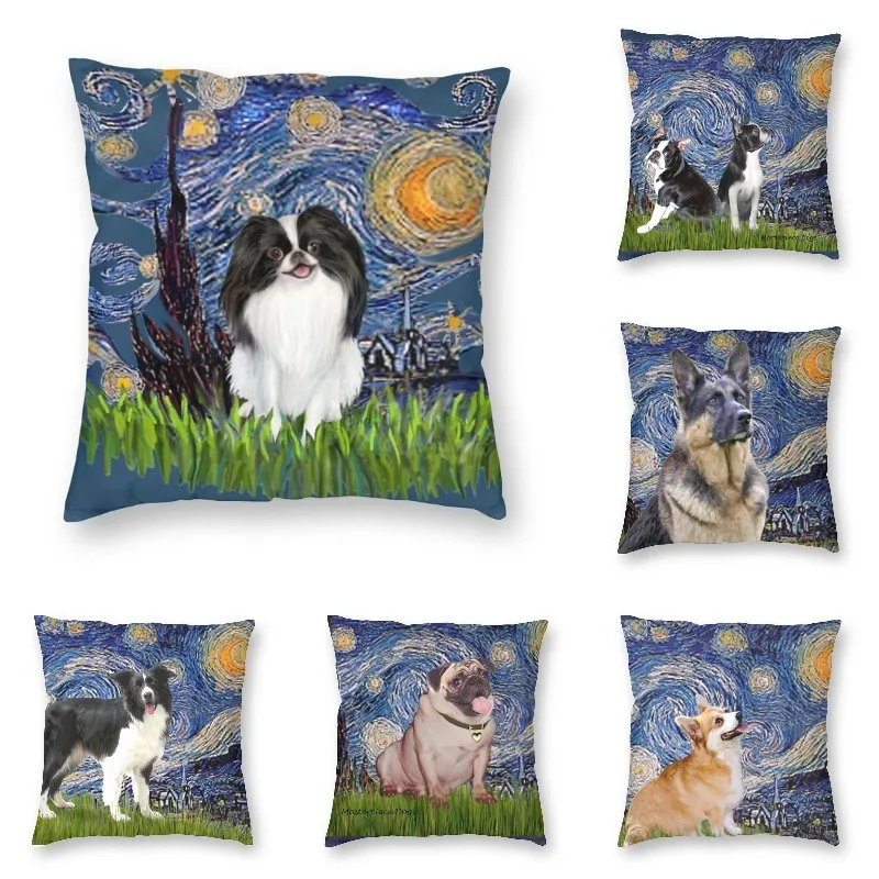 Чехол с изображением звёздной ночи в японском стиле с подбородком, подушка для гостиной, роскошный чехол с изображением собаки Ван Гога, чехол для дивана