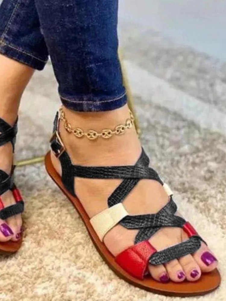 Сандалии женские из экокожи, босоножки с ремешком через плечо, на плоской подошве, регулируемая кнопка, модная повседневная Летняя обувь