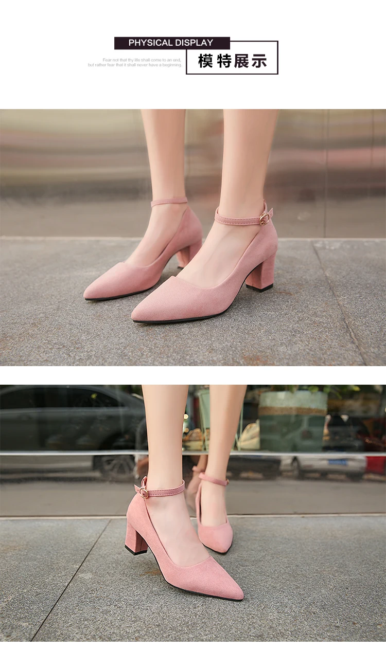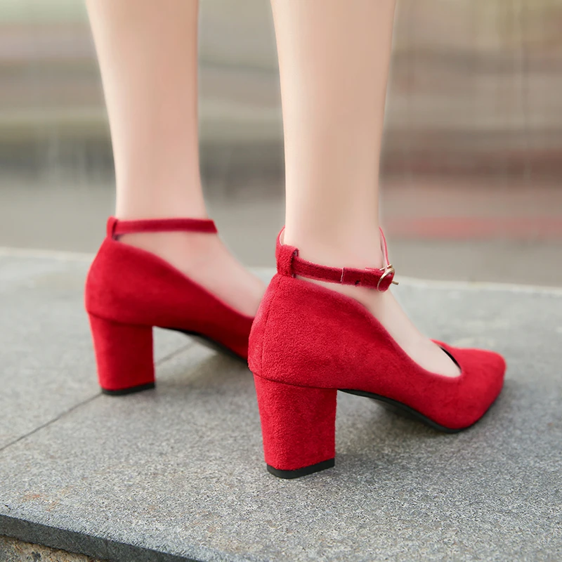 Туфли-лодочки женские на высоком каблуке, заостренный носок, ремешок с пряжкой, заостренный носок, квадратный каблук, весна-осень
