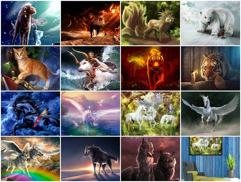 Алмазная живопись фантазия животные Лев Лошадь Единорог Тигр Волк медведь вышивка Стразы мозаика вышивка крестиком подарок ручной работы