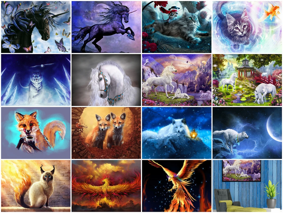 Алмазная живопись фантазия животные Лев Лошадь Единорог Тигр Волк м...