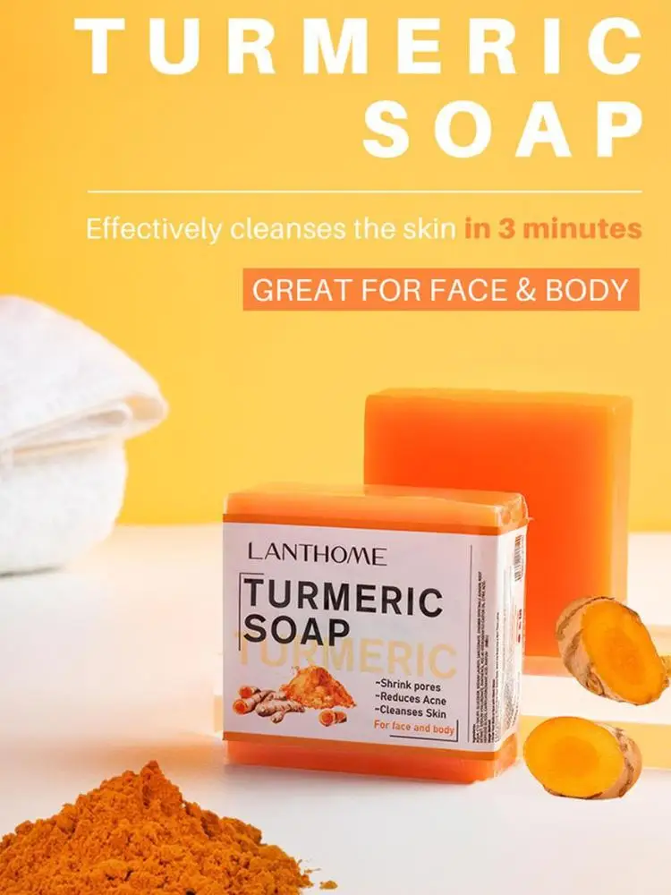 Мыло ручной работы для осветления кожи, куркума, натуральное скраб-мыло для очистки, питательное средство для удаления мерцов, лыжный E1u2
