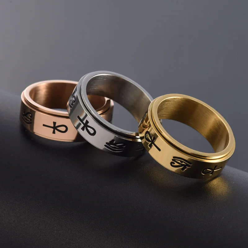 BAECYT 8 мм Вращающийся Спиннер кольца Египет глаз хора Анкх крест тревожное кольцо из нержавеющей стали свободно вращающееся антистрессовое кольцо