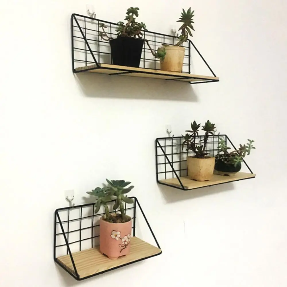 Железный держатель для хранения, домашняя настенная подвесная полка, цветочный горшок, Книжная деревянная стойка, Декор