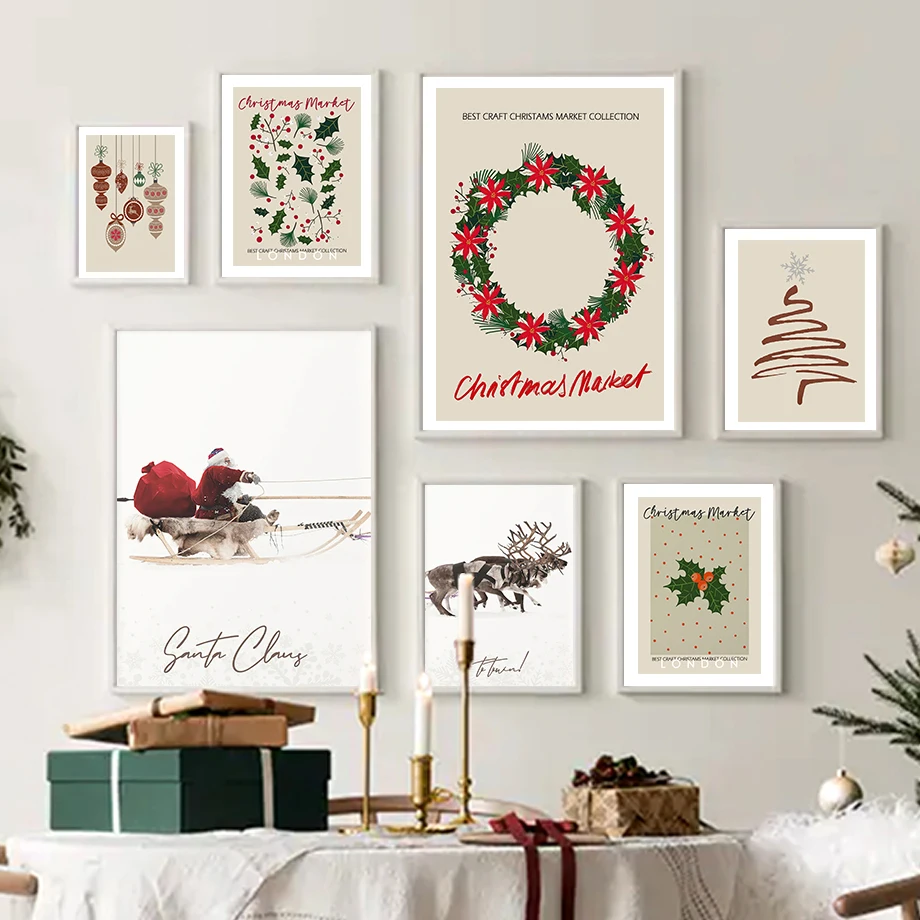 Рождественский рынок Базельский Санта-Клаус сани настенная Картина на холсте скандинавские плакаты и принты настенные картины для декора гостиной