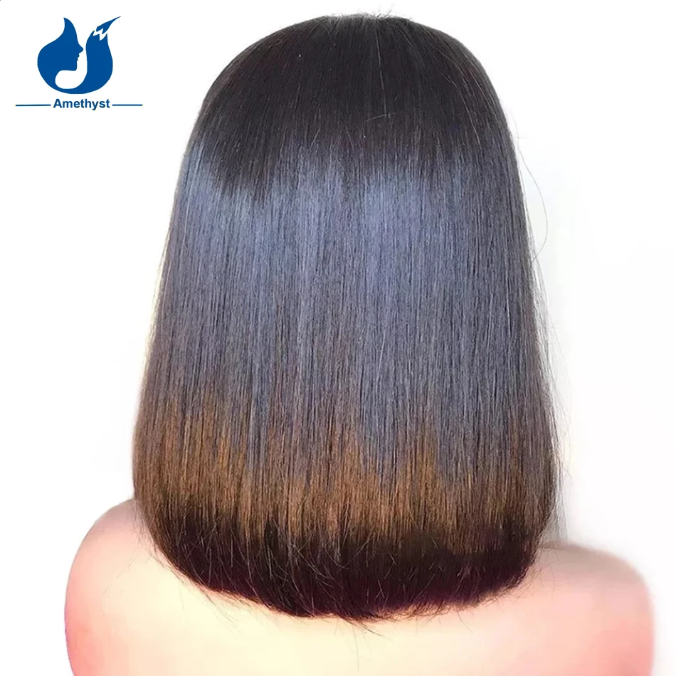 Аметист 200 плотность короткие боб парики человеческие волосы с челкой для женщин верхняя часть кожи головы полный парик бразильские волосы Remy коричневого цвета