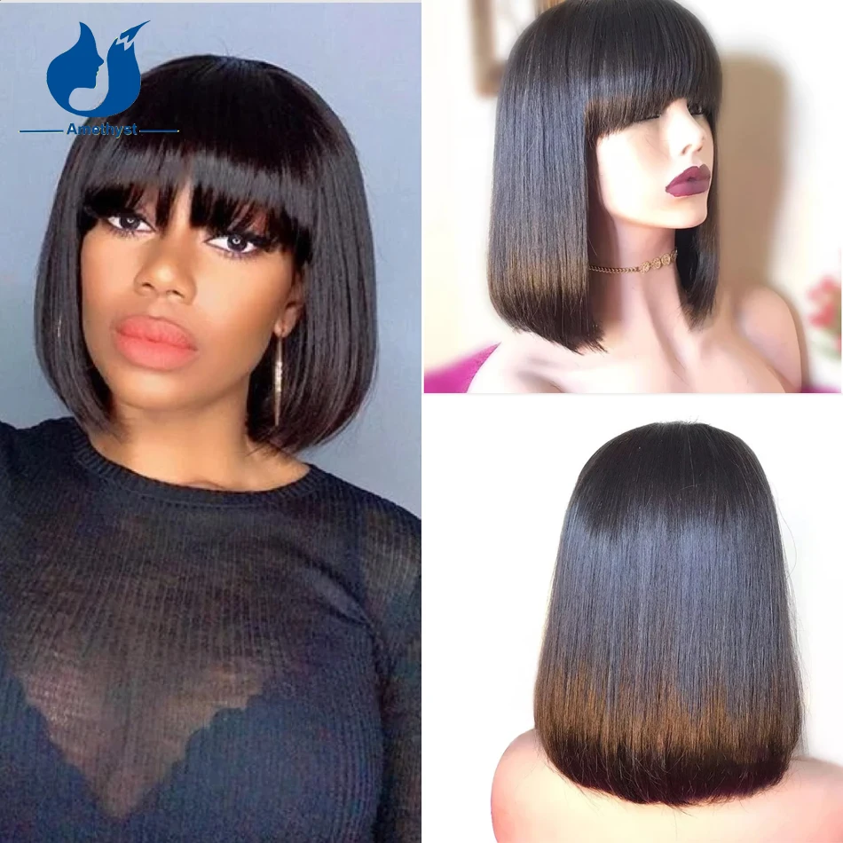 Аметист 200 плотность короткий Боб человеческие волосы парики с челкой для женщин головы топ полный машинный парик бразильский 100% Remy волосы Glueless