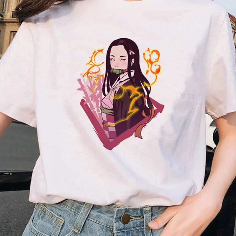 Футболка женская с коротким рукавом, мультяшный Рисунок аниме убийца демонов в японском стиле, топ в стиле Харадзюку, большие размеры, на лето