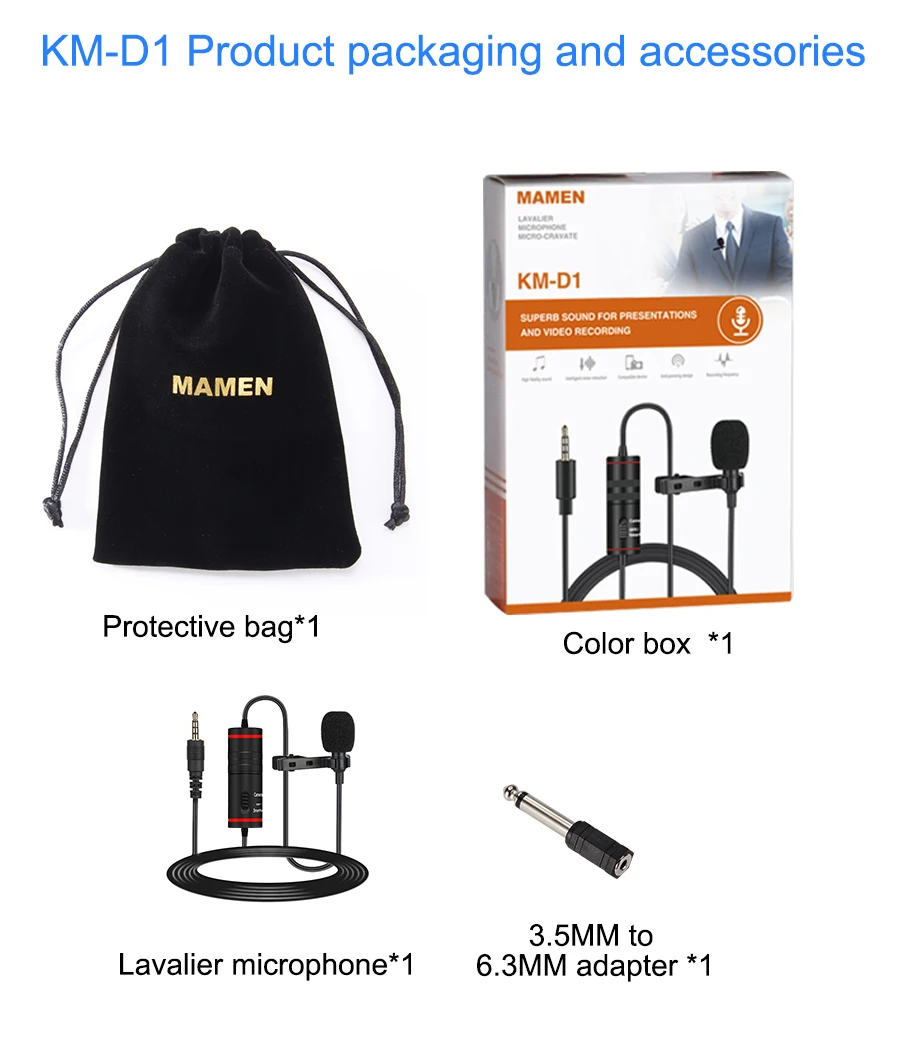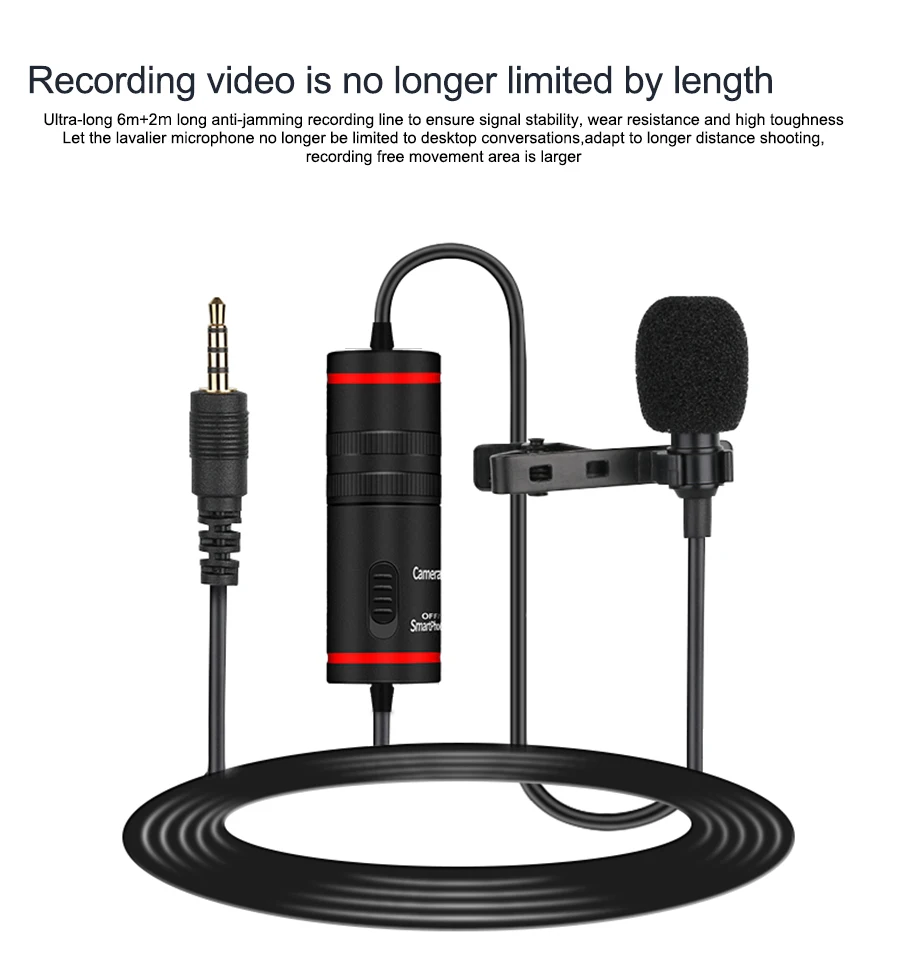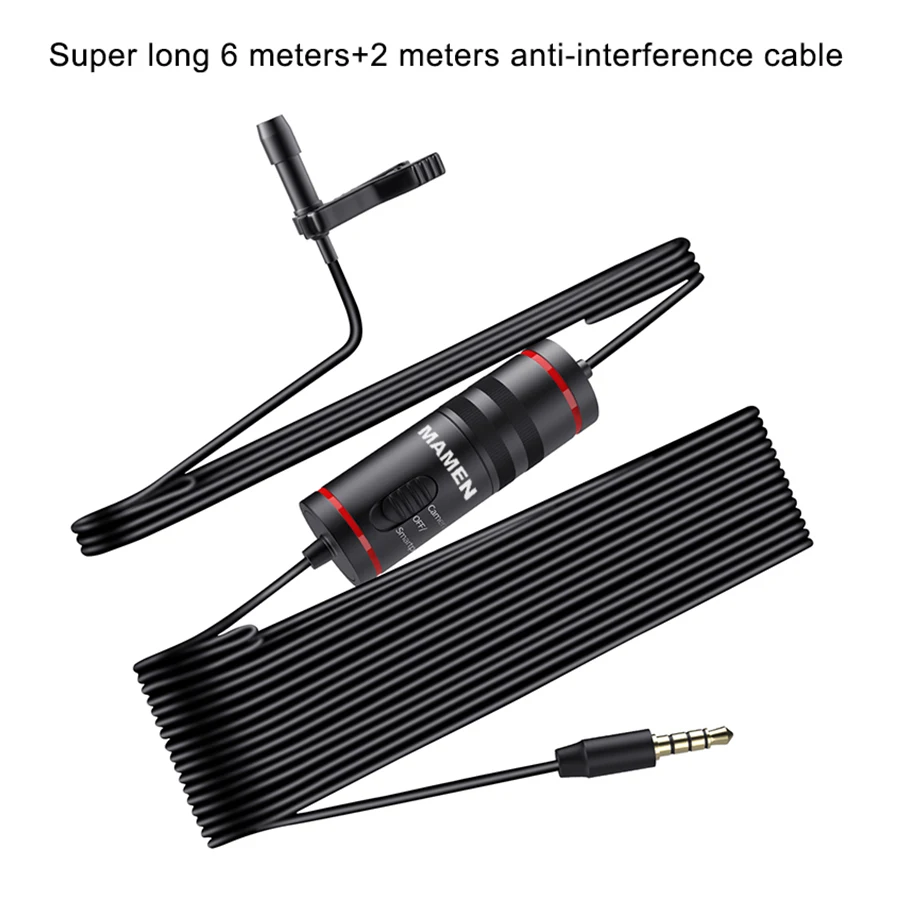 Петличный конденсаторный микрофон MAMEN, 8 м, 3,5 мм, для записи ци...