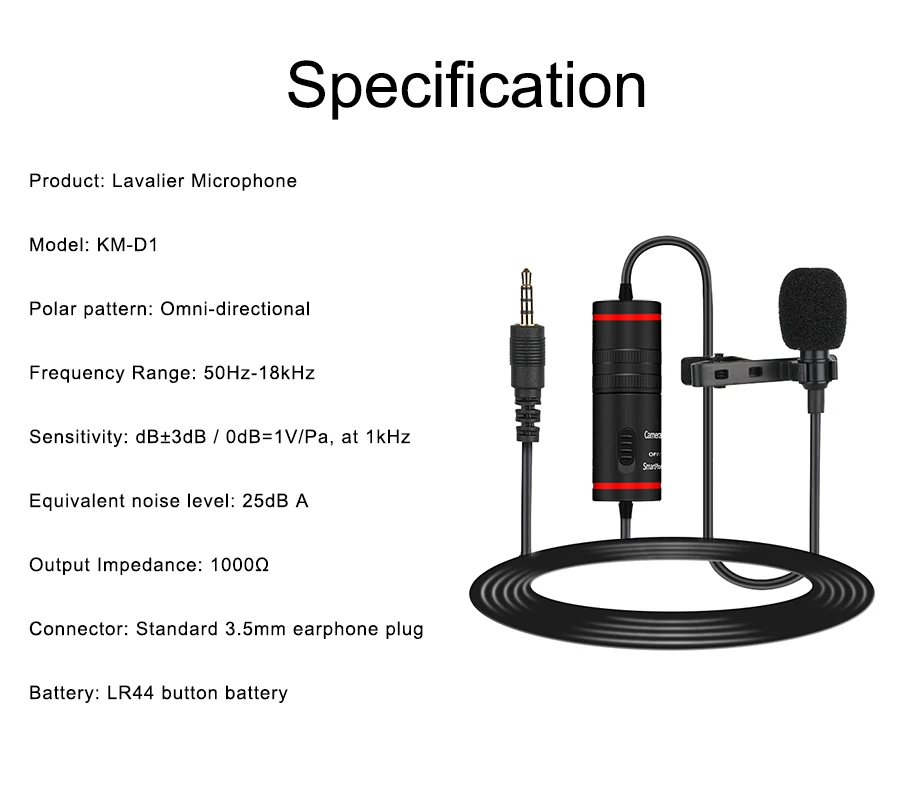 Петличный микрофон MAMEN 3,5 мм для записи аудио и видео для iPhone...