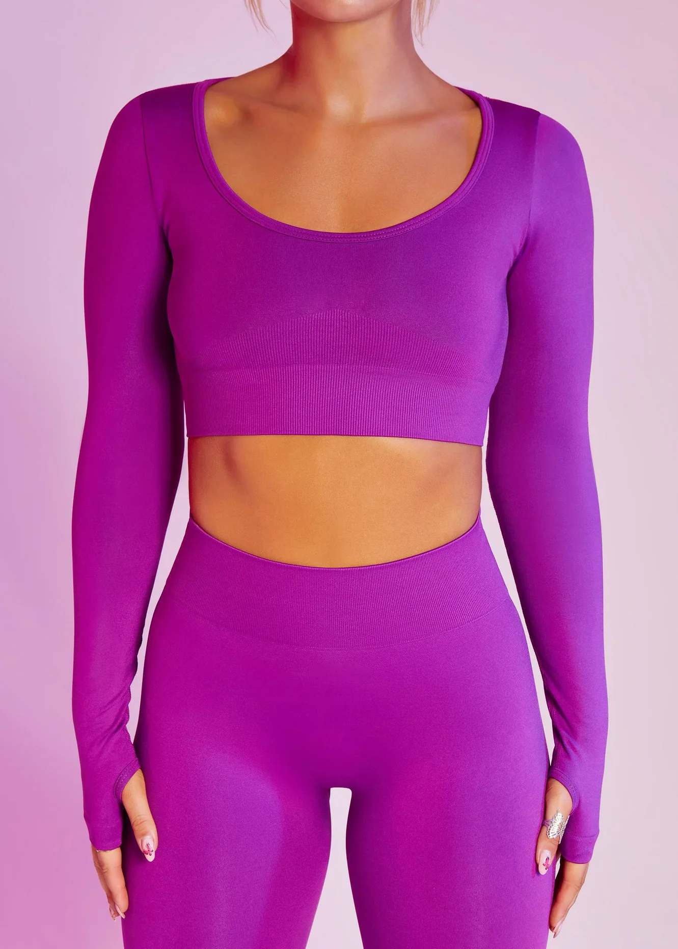 Бесшовный спортивный комплект для женщин, короткий топ с длинным ру...