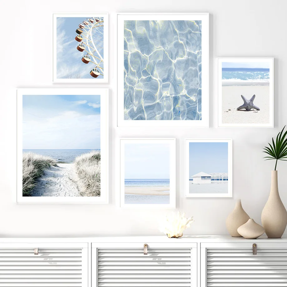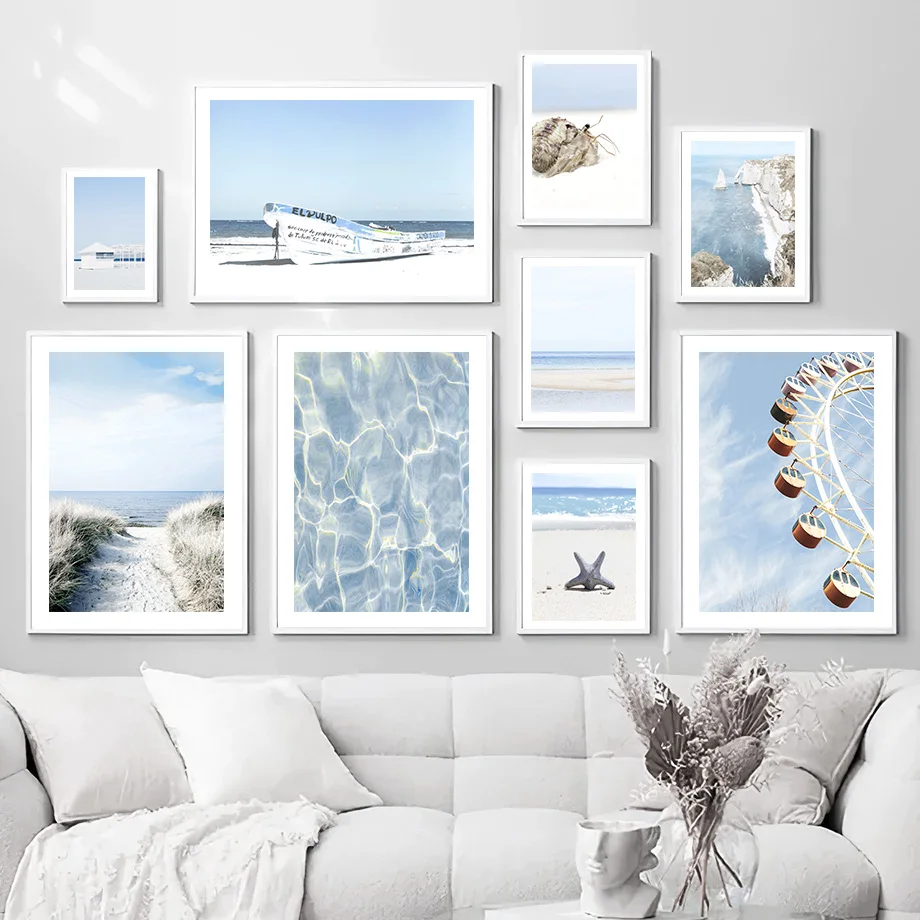 Морской песчаный пляж, тростниковый парусник, колесо обозрения, настенная живопись, холст, скандинавские постеры и принты, настенные картинки для декора гостиной