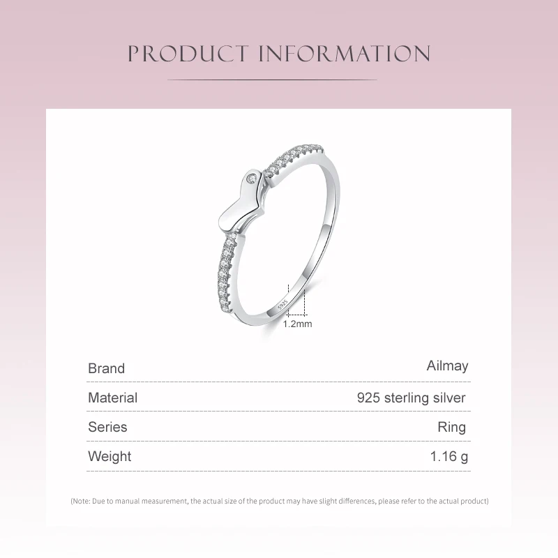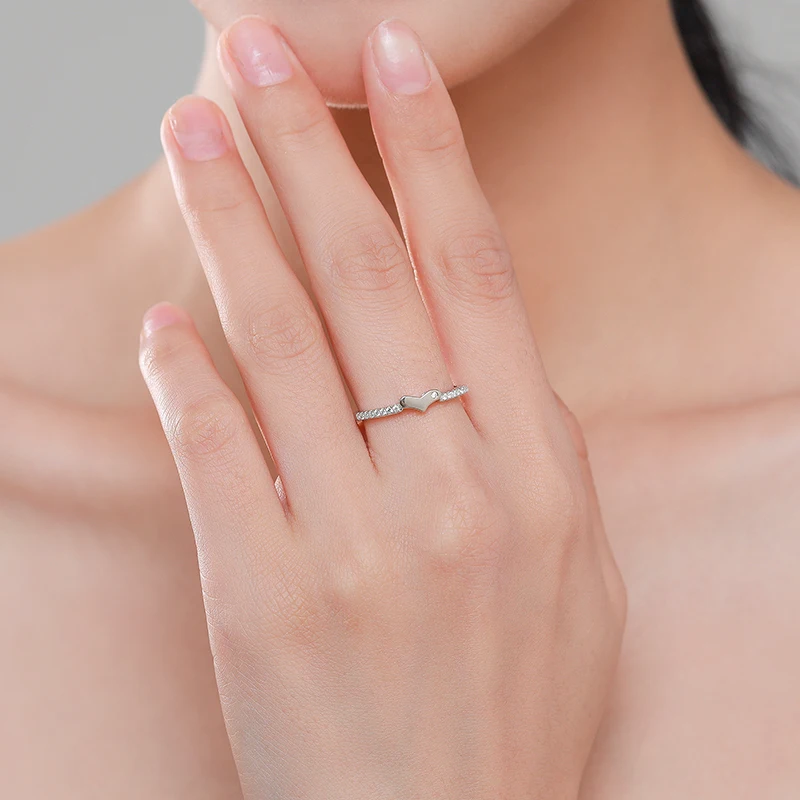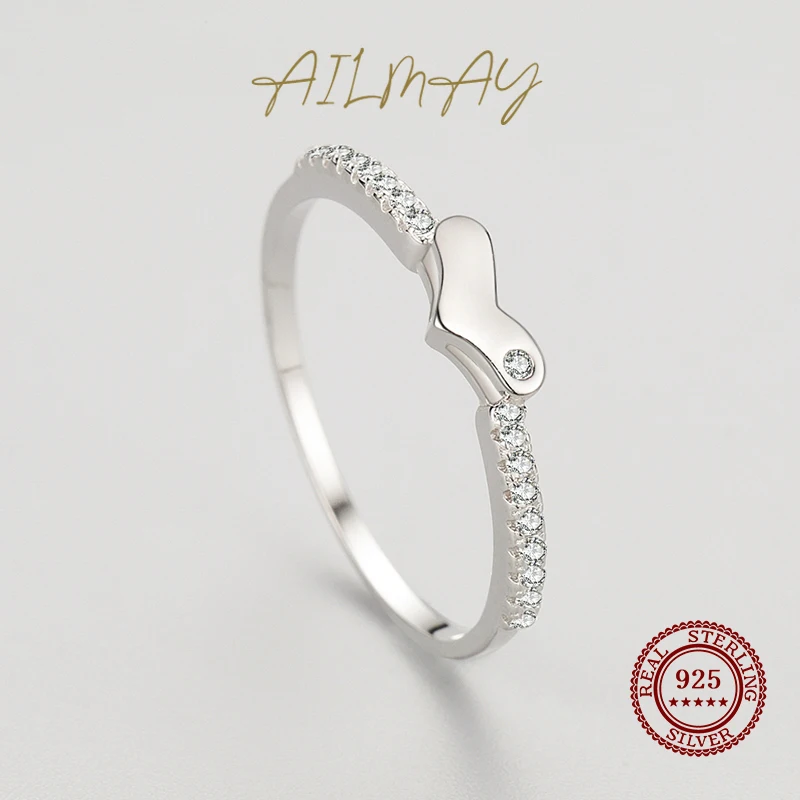 Ailmay CZ штабелируемые кольца на палец в форме сердца из настоящего серебра 925 пробы для женщин минималистичные Изящные Ювелирные изделия 2021 новый стиль