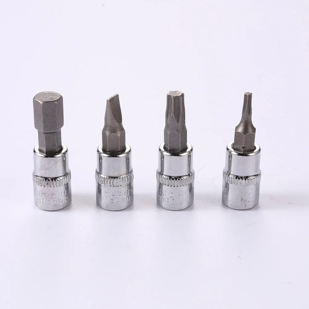 Особенности:1. Ручка отвертки может сочетаться с головкой отвертки (крестообразная Т-образная головка сливового цветка Шестигранная удлинитель универсальный шарнир может вместить гибочный стержень)2. Рукав изготовлен из высококачественной хромированной ванадиевой стали 50BV30 холодным прессованием. Крутящий момент на 50% выше, чем у углеродистой стали. Рукав обработан гладкой поверхностью второго класса и имеет хороший эффект предотвращения ржавчины. Головка партии изготовлена из CR-V материала, который обладает повышенной твердостью и прочностью.3. Трещоточный ключ (положительный и отрицательный), который быстро выпадает, функция быстрого спуска кнопки может гарантировать, что розетка надежно заблокирована в процессе использования, И гнездо можно легко снять или быстро заменить жирными или жирными пальцами. Наш высококачественный 45 зубной храповик может улучшить скорость работы. Это идеальный набор инструментов для открытия ускорителя, и маленькие гайки обычно используются в кондиционировании воздуха, гайки сидений, крылья шин, дверные замки и бытовые (в основном включены).Характеристики:Материал: углеродистая стальСпецификация:Гнездо шестигранного узора: T10 / T15 / T20 / T25 / T30 / T40Гнездо шестиугольника с плоской головкой: H3 / H4 / H5 / H6 / H7 / H8Прорези: S4/S5.5/S7Крест: PH1/PH2/PH3POZI: PZ1 / PZ2 / PZ313 шт. 1/4 "с шестигранной головкой гнезда: 4-4.5-5.5-6-7-8-9-10-11-12-13-14mm1 шт. 1 / 4 "универсальный шарнир1 шт. 1 / 4 "Эластичные расширение стержня2 шт. 1 / 4 "удлинительные стержни (50 мм, 100 мм)3 шт. l-типа гаечные ключи, дюймовый стандарт (1,5-2-2,5 мм)1 шт. 1 / 4 "Горка для душа1 шт 1/4 "интерфейс маленький квадратный бар1 шт. 1 / 4 "быстрое освобождение ключ-трещотка1 шт. ящик для инструментовПримечания:1. Из-за различных настроек монитора и светильник эффект, фактический цвет элемента может быть s светильник ly отличается от цвета, представленного на снимках. Спасибо!2. Возможны отклонения в 1-3 см вследствие измерений вручную.