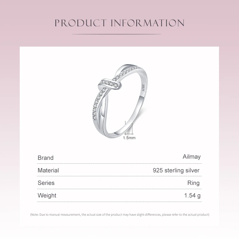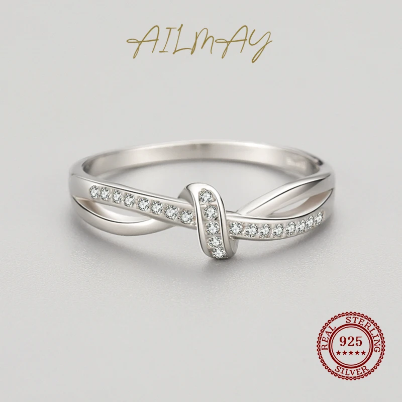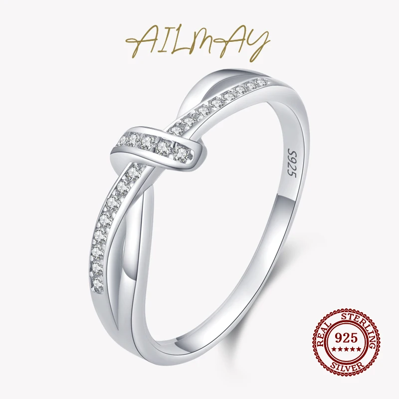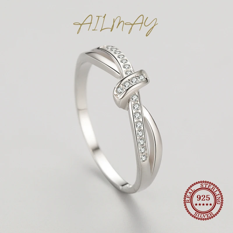 Ailmay серебряные кольца с переплетенными линиями кольца для женщин классические роскошные Стерлинговое Серебро 925 пробы модные ювелирные изделия