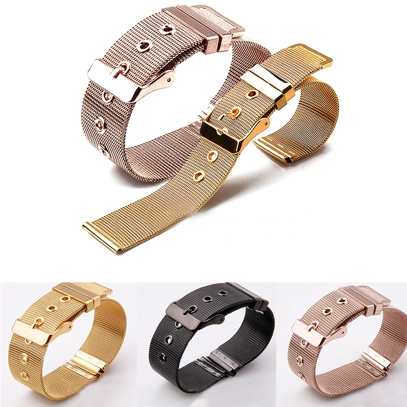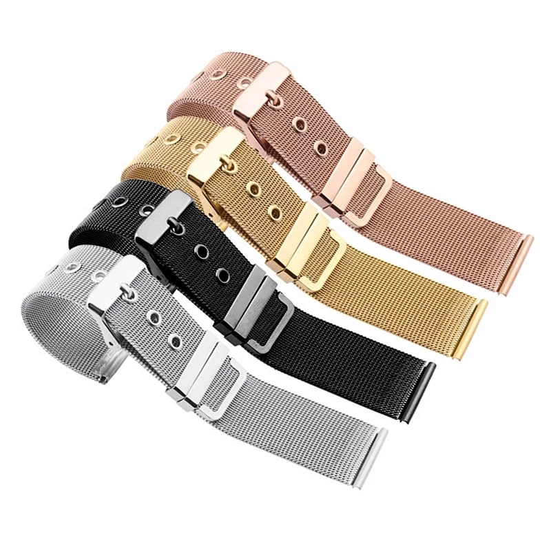 Ремешок Миланская сетка для наручных часов, универсальный металлический браслет из нержавеющей стали с сетчатой пряжкой с язычком, 18 мм 20 мм 22 мм 24 мм, аксессуары для мужчин и женщин