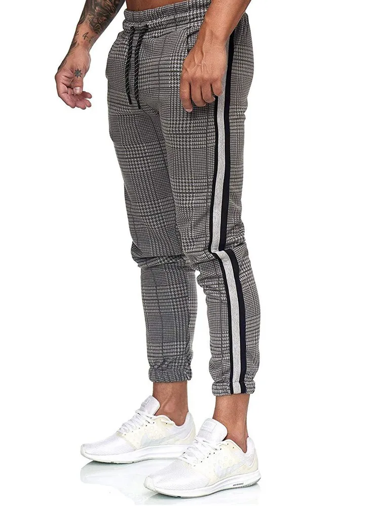 Мужские облегающие брюки в клетку с боковой полосой, обтягивающие брюки, джоггеры, повседневные брюки высокого качества, мужские полосатые брюки, повседневные женские