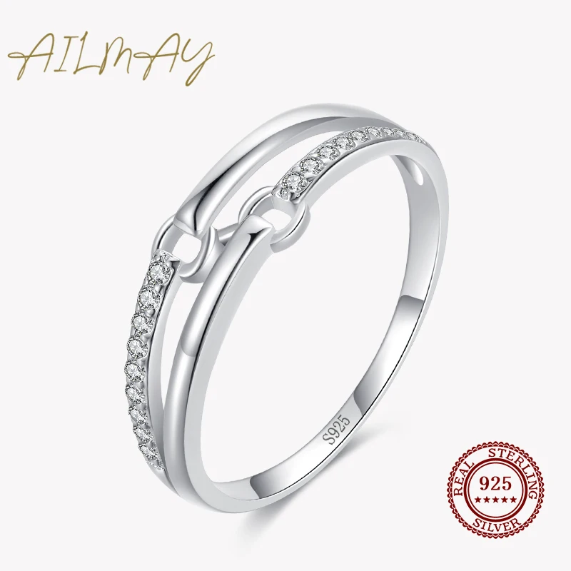 Модные кольца Ailmay из стерлингового серебра 925 пробы с простой текстурой для женщин и девушек, антиаллергенные изысканные ювелирные изделия, подарки