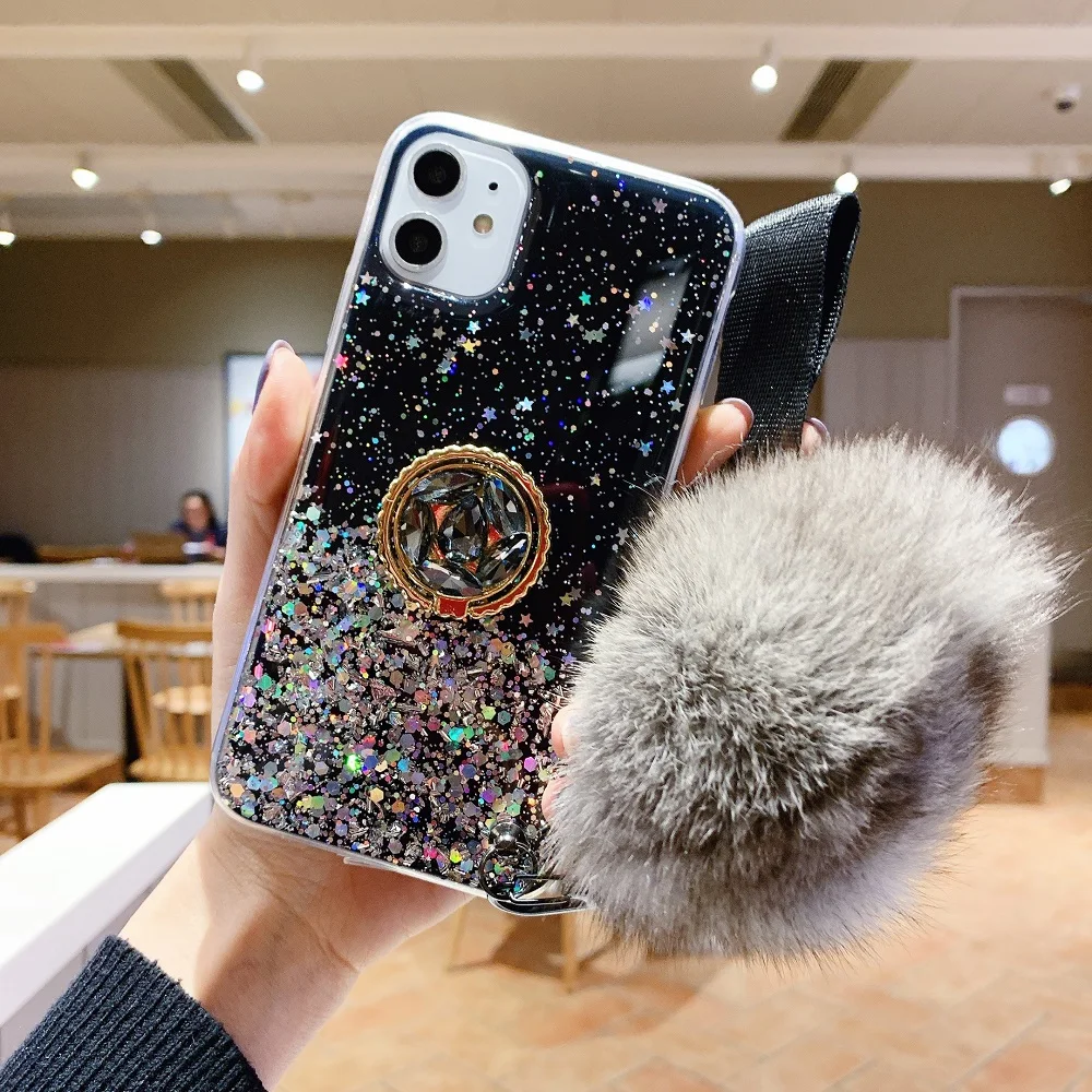Блестящий чехол с блестками и меховыми шариками для Samsung Galaxy ...