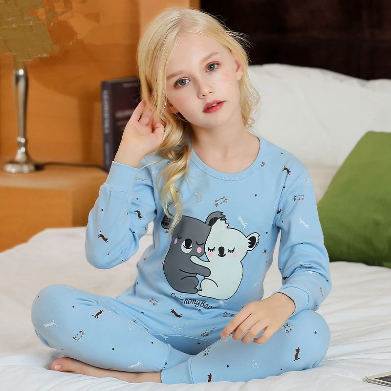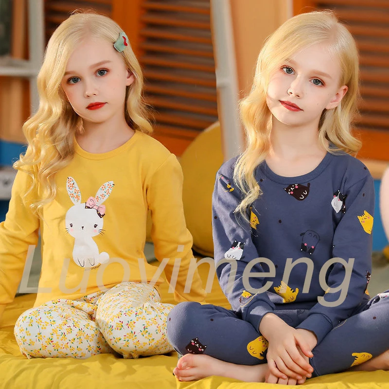 Одежда для маленьких девочек, пижамный комплект с длинным рукавом, весенняя одежда для сна с мультяшным рисунком для мальчиков, хлопковая Домашняя одежда, пижама, детская одежда для сна 3, 5, 7, 9, 11, 12, 13 лет