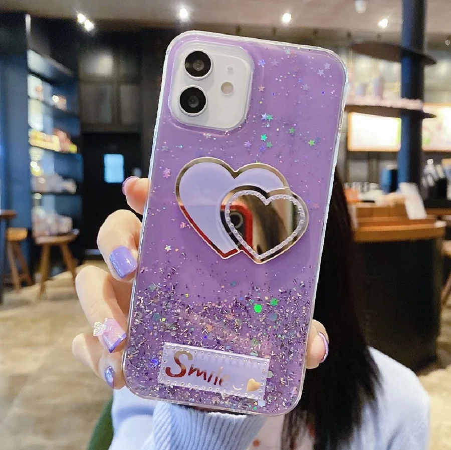 Зеркало блестящих в форме сердца девичий чехол для Samsung Галактик...