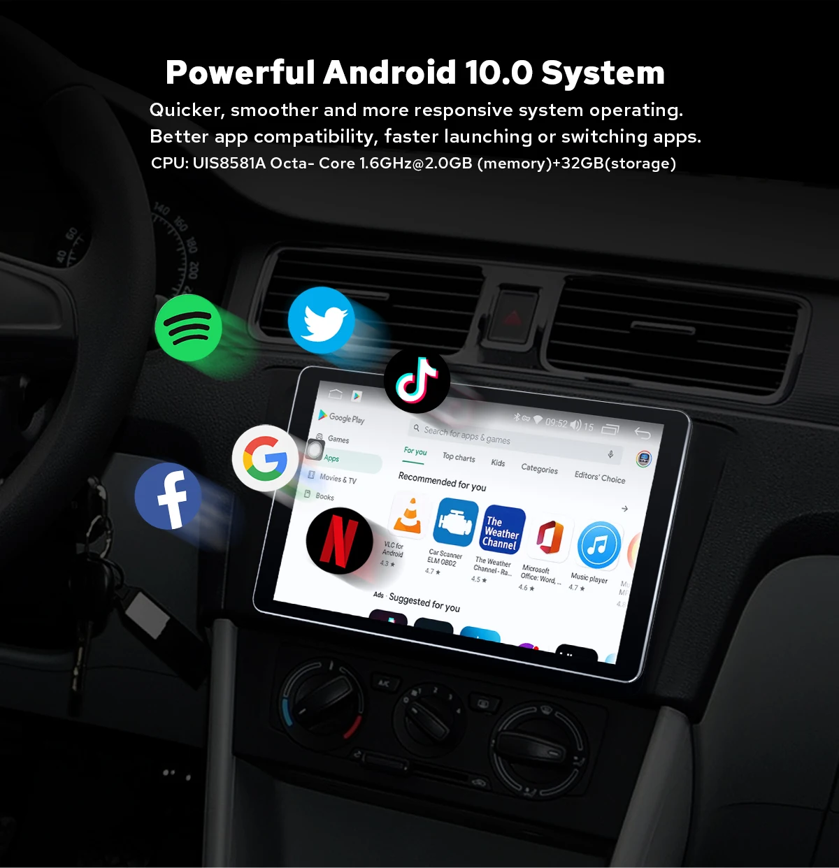 1. Совместимость с Android 10,0, UIS8581A восьми-ядерный 1,6 ГГц двухъядерный 8 дюймов 2 din 1280*800 ulter-тонкий Экран2. Супер аппаратная производительность, 2 Гб RAM + 32 ГБ ROM Octa Core3. Интернет-развлечения4. Поддержка Google Play Store, вы можете скачать множество приложений5. Поддержка обратной камеры aftermarket/DVR/OBD2/DAB +/TPMS, вам нужно купить отдельно6. Поддержка быстрой загрузки, быстрое включение радио7. Поддержка кнопок управления рулевым колесом (без Canbus автомобиля)8. Bluetooth для handfree, Синхронизация Bluetooth телефонной книги9. Встроенный DSP, делает радио лучше звук и более Регулируемый эквалайзерНовый JOYING блок теперь поставляется с SPDIF цифровой аудио. Для максимального качества звука вы можете напрямую подключить внешний усилитель/DSP к цифровому выходу SPDIF; Если ваш внешний усилитель/DSP не поставляется с входом SPDIF, вам нужно будет подключить усилитель/DSP через FL/FR out & RL/RR out.